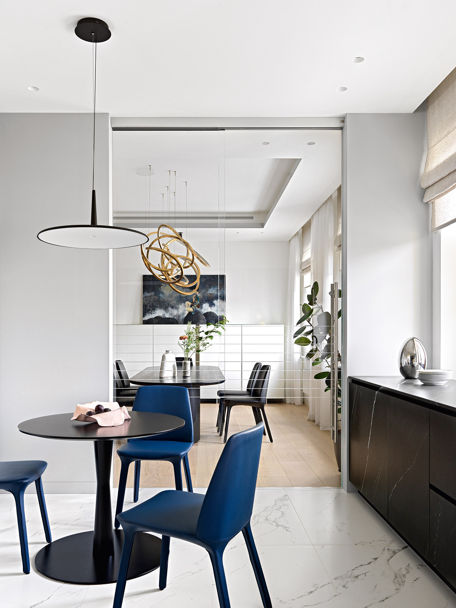 В этом современном и лаконичном интерьере по проекту Оксаны Сальберг–Вачнадзе привлекают внимание нестандартные планировочные решения и филигранная работа с цветом и фактурами