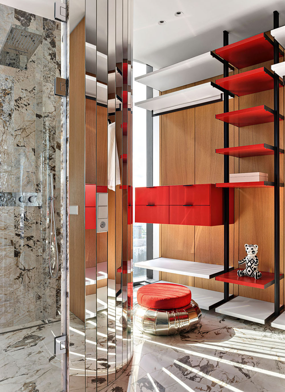 Квартира находится в центре Москвы, в жилом комплексе Capital Towers. Заказчица, известная певица Слава, далека от стереотипов — и в жизни, и в интерьере. «Апартаменты задумывались как место для творчества и вдохновения, где каждый элемент отражает индивидуальность владелицы, — рассказывает дизайнер Ирина Чернейкина, автор проекта и глава архитектурного бюро WOWDOM. — Единое стилевое решение бы не раскрыло нашу задумку в полной мере, поэтому за основу мы взяли эклектику — выверенное смешение современных мотивов, ар-деко, гламура начала нулевых и даже отсылок к советскому времени в авторской интерпретации. В результате получился по-настоящему уникальный интерьер, смелый, концептуальный, в чем-то даже хулиганский».