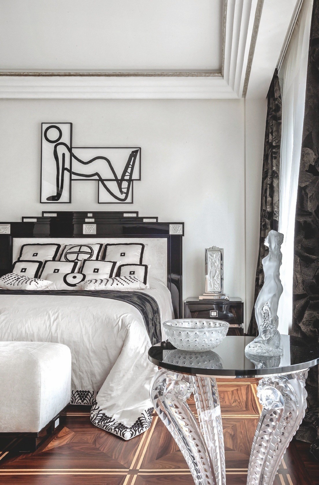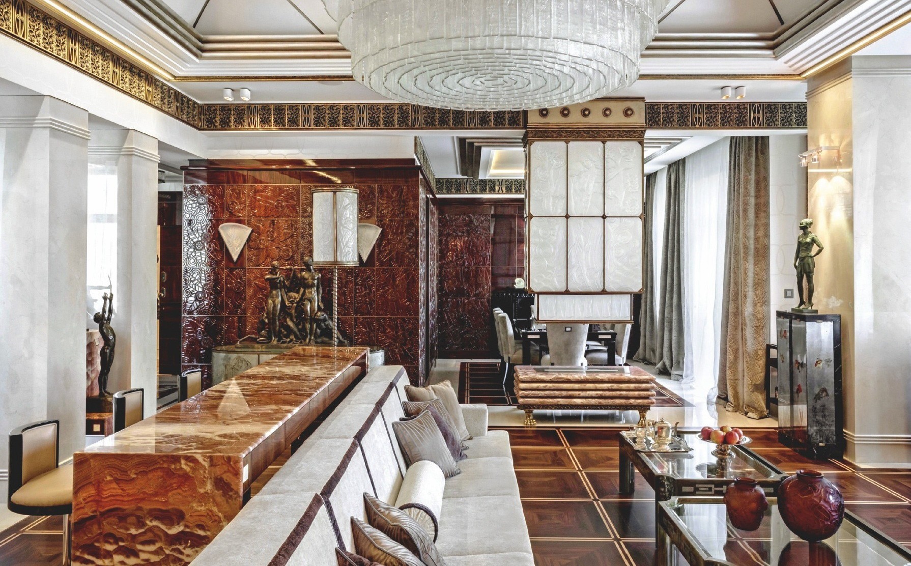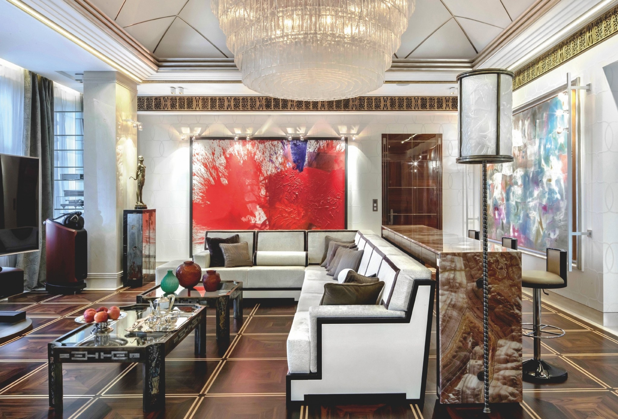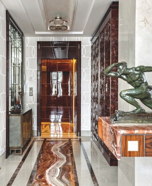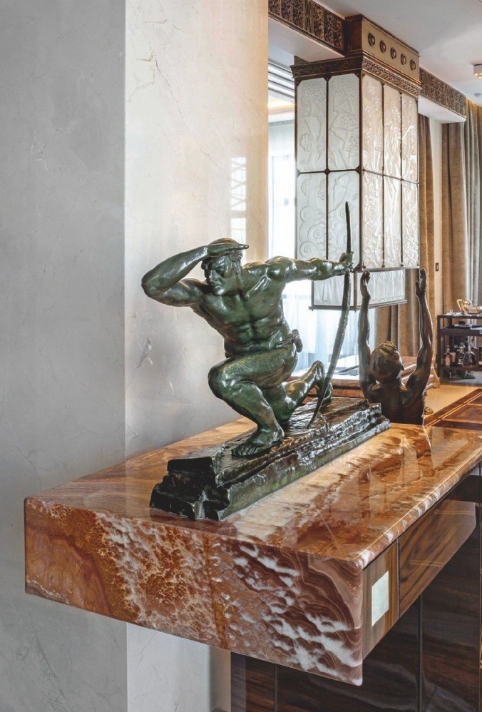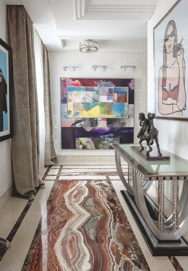 Квартира занимает последний этаж дома «Ребус», спроектированного архитектором Сергеем Ткаченко. Владельцы по старой памяти обратились к Павлу Романову с пожеланием создать интерьер, в котором достойным образом могла бы экспонироваться внушительная коллекция предметов искусства: современной живописи, скульптур и антикварных предметов LALIQUE. Большинство из них куплено на аукционах и представляет собой особую ценность. Например, работы ярчайших представителей ар–деко: румынского скульптора Деметера Чипаруса, немецкого скульптора Бруно Зака или картины современных художников, таких как Герман Нич (представитель венского акционизма), концептуалиста Натана Хилдена и других.