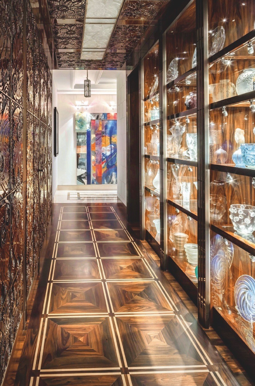 Проектируя интерьер, архитектор отошёл от привычных для выставочного пространства приёмов и до предела усложнил пространство, создал среду, в которой даже самые яркие и харизматичные экспонаты не довлеют над человеком, а органично живут в родной стихии. «Мы хотели оформить пространство как произведение искусства, как картину, внутри которой живут люди, — объясняет замысел Павел Романов.—Такой художественный приём: поместить человека внутрь произведения искусства. Получилось насыщенное, активно декорированное пространство. Мы заранее знали, что здесь будут и современные картины, и антикварные вещи. И если в выставочном зале фон делают нейтральным, чтобы выделить экспонаты, то мы сделали ровным счётом наоборот. Всё‑таки это квартира для жизни, а не просто домашний музей».
