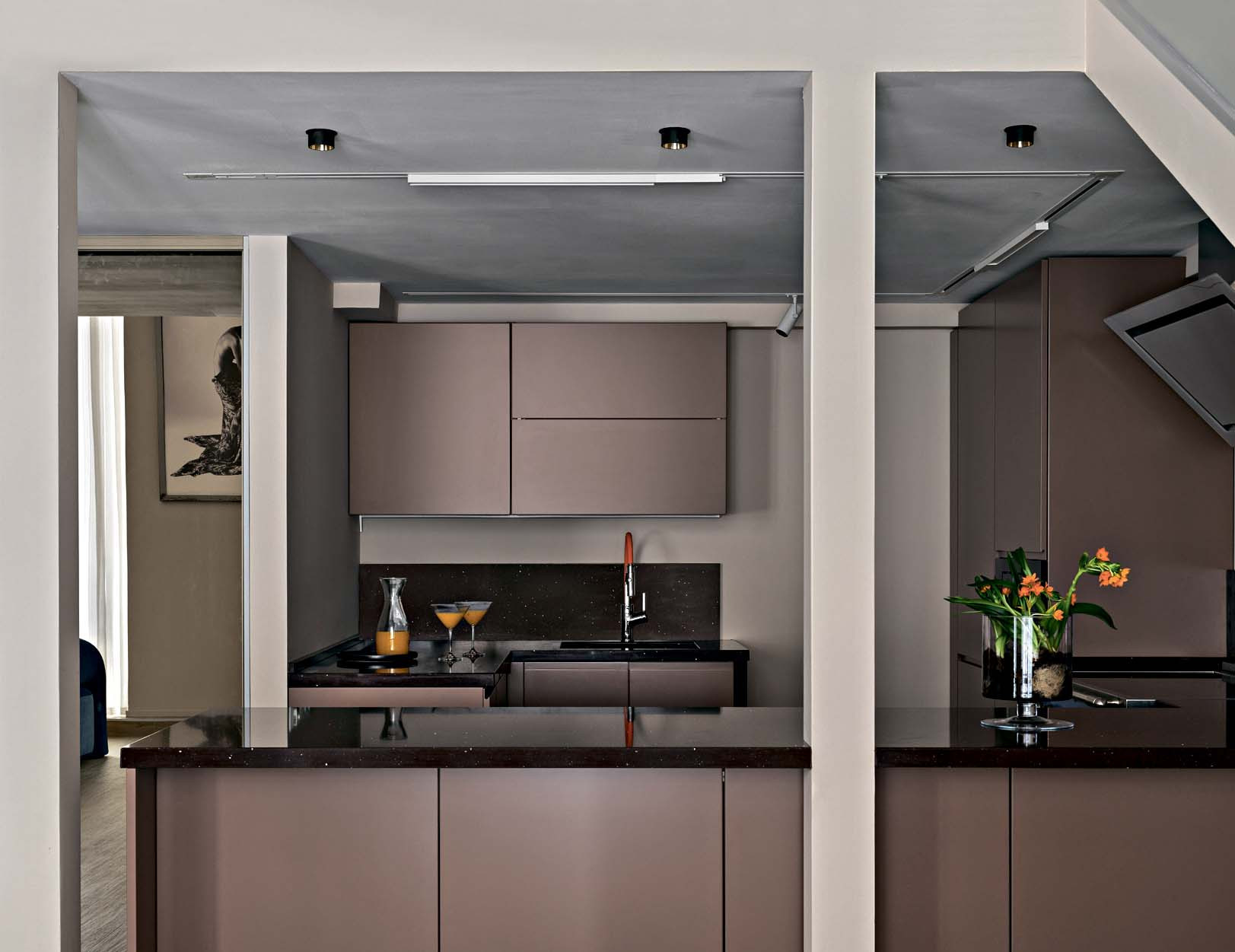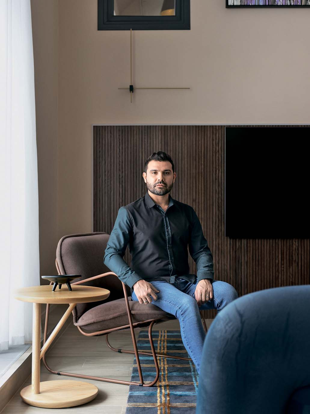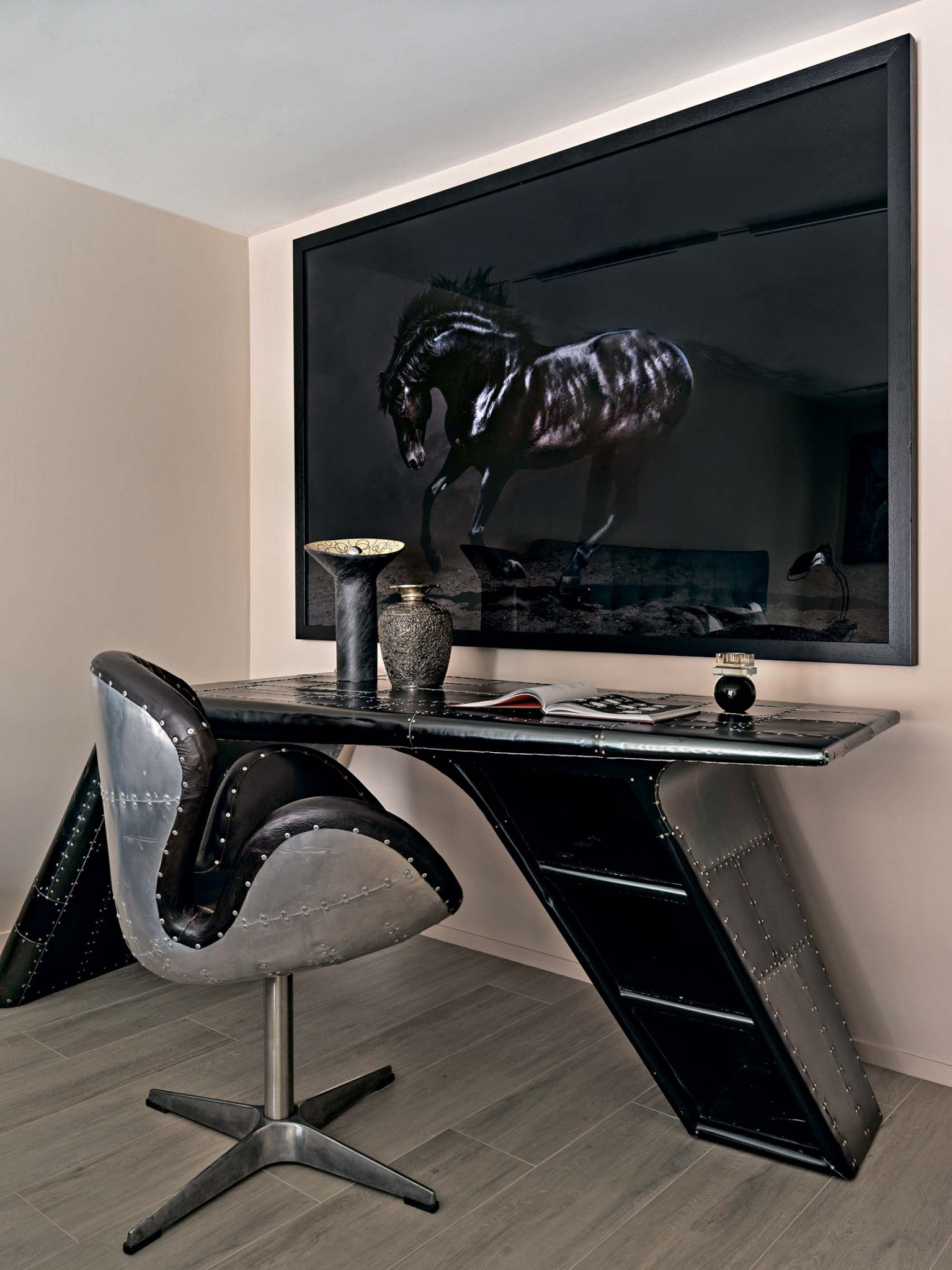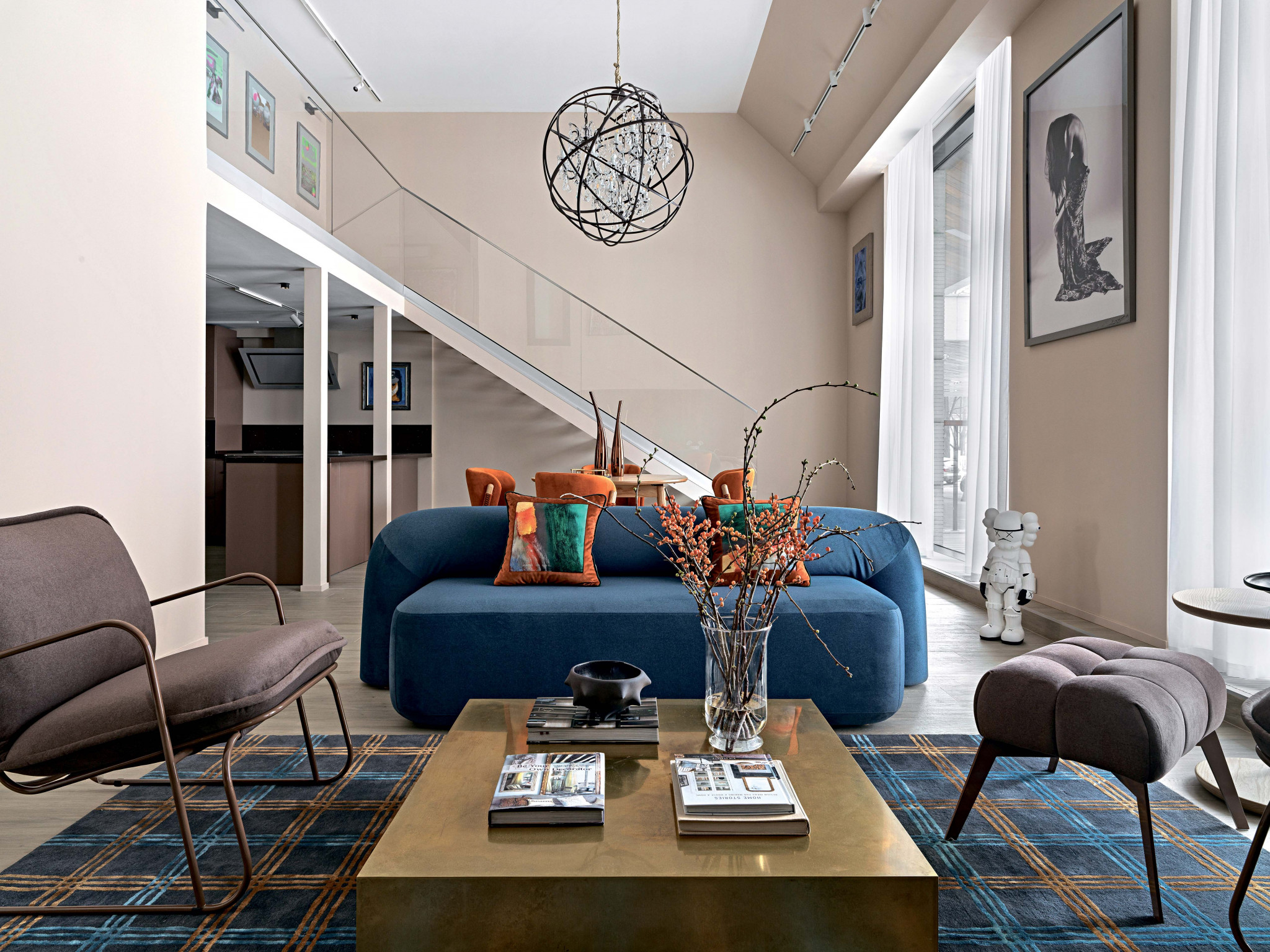 Заказчик — современный холостяк средних лет, он ведёт светский образ жизни, часто бывает за границей, посещает вернисажи и знает толк в современном искусстве. Поэтому декор в интерьере — это не просто бессмысленный набор предметов, а своего рода коллекция воспоминаний об определённых моментах его жизни. Первоначальная площадь объекта составляла 95 кв. м, но высокий потолок 4,7 метра позволил дизайнеру сделать второй уровень и практически удвоить полезное пространство. «При этом я предложил сохранить в центральной части высоту, чтобы наполнить квартиру воздухом. Такой эффект второго света изначально задал пространству динамику, он подчёркивает высоту окон и делает центр дома более парадным и эффектным», — объясняет Александр.