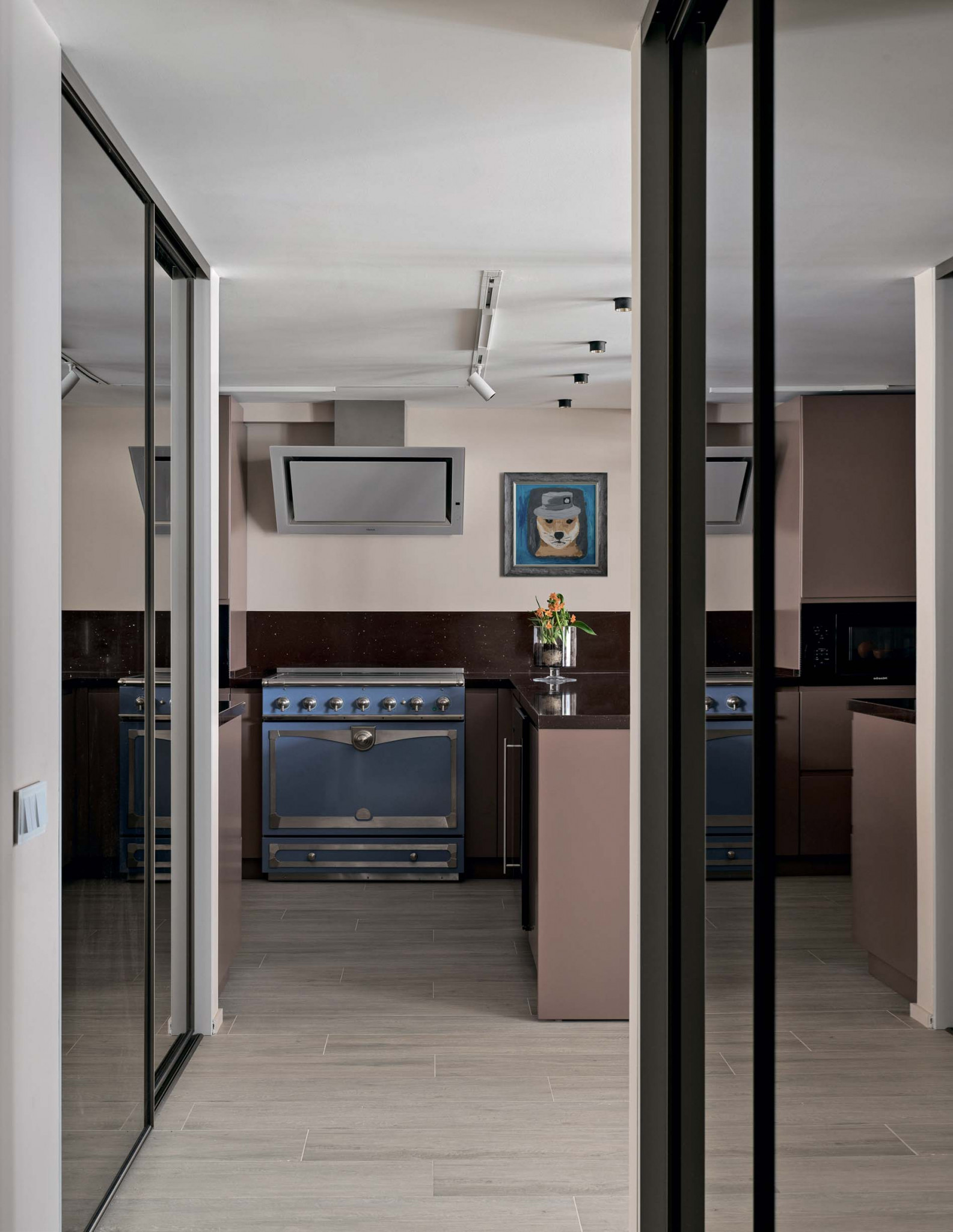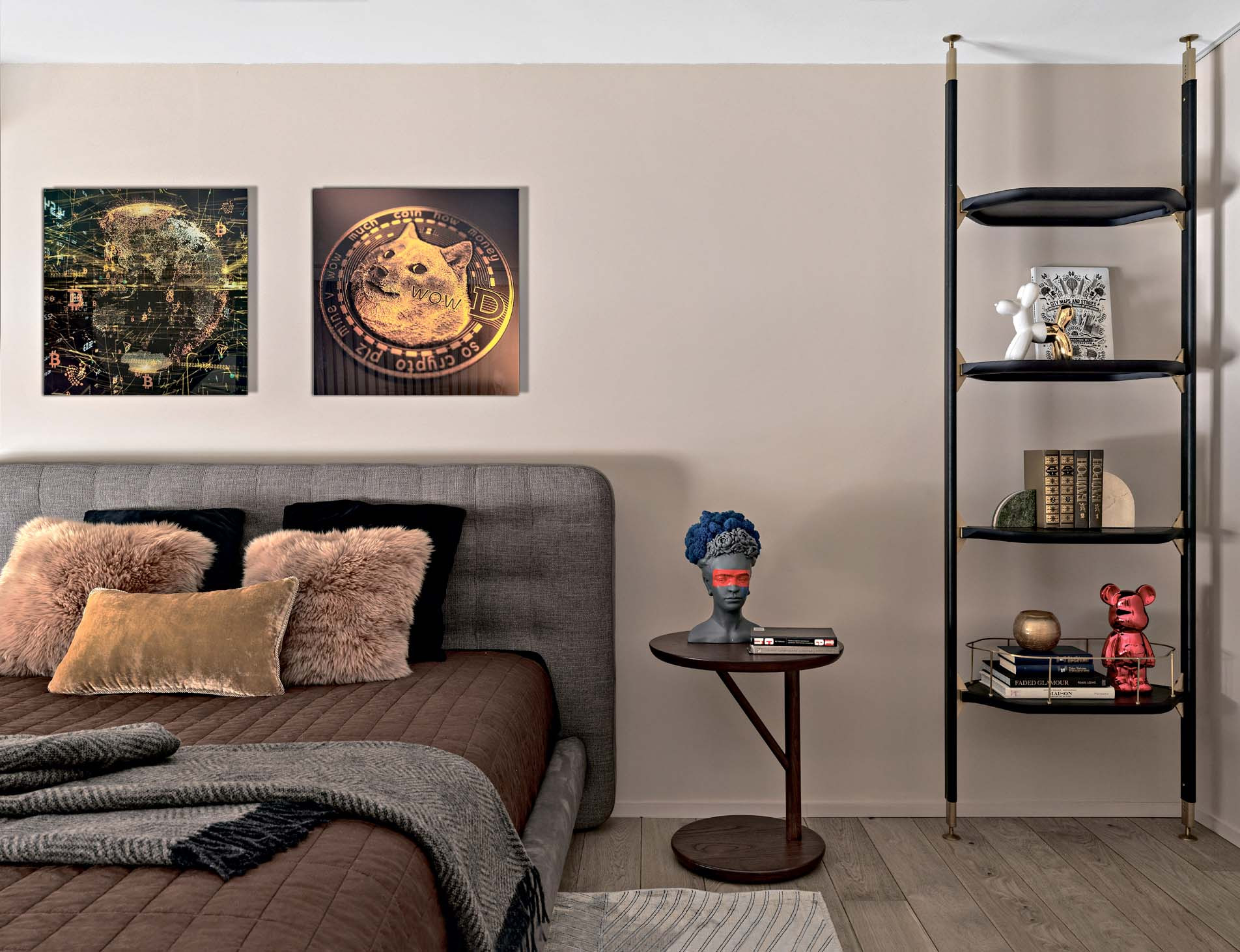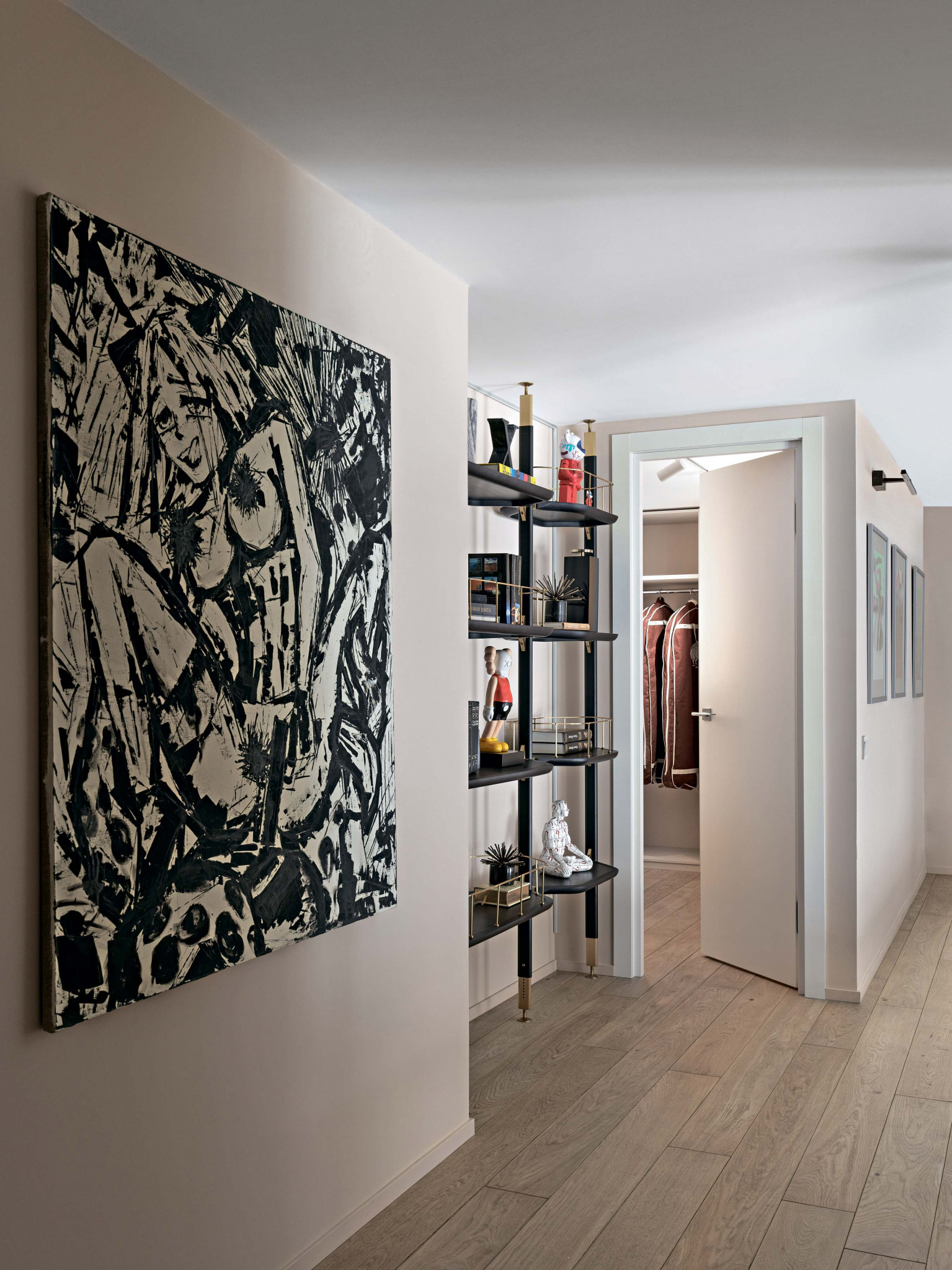 При первом взгляде кажется, что на фотографиях — комбинированная съёмка: так необычно смотрятся смелые, порой ироничные предметы искусства в минималистском интерьере. И дизайнер Александр Кононенко сделал это неспроста. Квартира находится в современном ЖК «Воробьёв Дом» с собственным парком и выходом на набережную Москвы–реки. Локация и архитектура здания стали определяющими в выборе базового — минималистского — стиля, но им дизайнер не ограничился. «В первую очередь, я хороший психолог, ведь моя главная задача ещё на стадии проектирования выявить тонкие моменты жизни будущих хозяев, чтобы они сразу чувствовали свой дом и получали удовольствие от жизни в нём», — отмечает он. Александр уже оформлял для заказчика другие объекты в самых разных стилях, а в этой городской даче было решено сделать лаконичный фон для самых необычных, порой хулиганских артефактов.