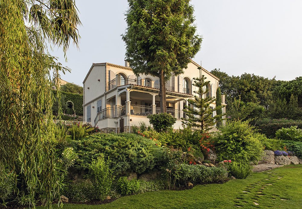 Дом с раскинувшимся вокруг садом архитектор Ольга Кушнарёва–Леоне строила для большой семьи. В распоряжении команды проекта оказался живописный участок со сложным ландшафтом, перепадом высот и небольшим домом в центре курортного городка на Лазурном Берегу Франции. Его предстояло превратить в уютное и комфортное пространство для семьи с двумя детьми. Нужно было полностью переосмыслить, значительно расширить и фактически перестроить существовавшее на участке здание. «При этом мы хотели сохранить и выгодно подчеркнуть элементы, которые полюбились заказчикам. К сложному, разноуровневому характеру участка мы отнеслись с особенным вниманием. На своих местах остались несколько крупных высоких деревьев и гряды валунов, ограждающие клумбы на уступах, а также эффектная деревянная лестница, ведущая к бассейну», — рассказывает автор проекта. Её изгибу вторит форма уже новой, парадной лестницы с коваными перилами, которая поднимается из сада к гостиной. «Стиль этого дома сочетает в себе элементы классики и стиля прованс. Симметричный портал при входе и асимметричная широкая лестница в сад, ставни на арочных окнах формируют уникальный облик особняка», — говорит Ольга.