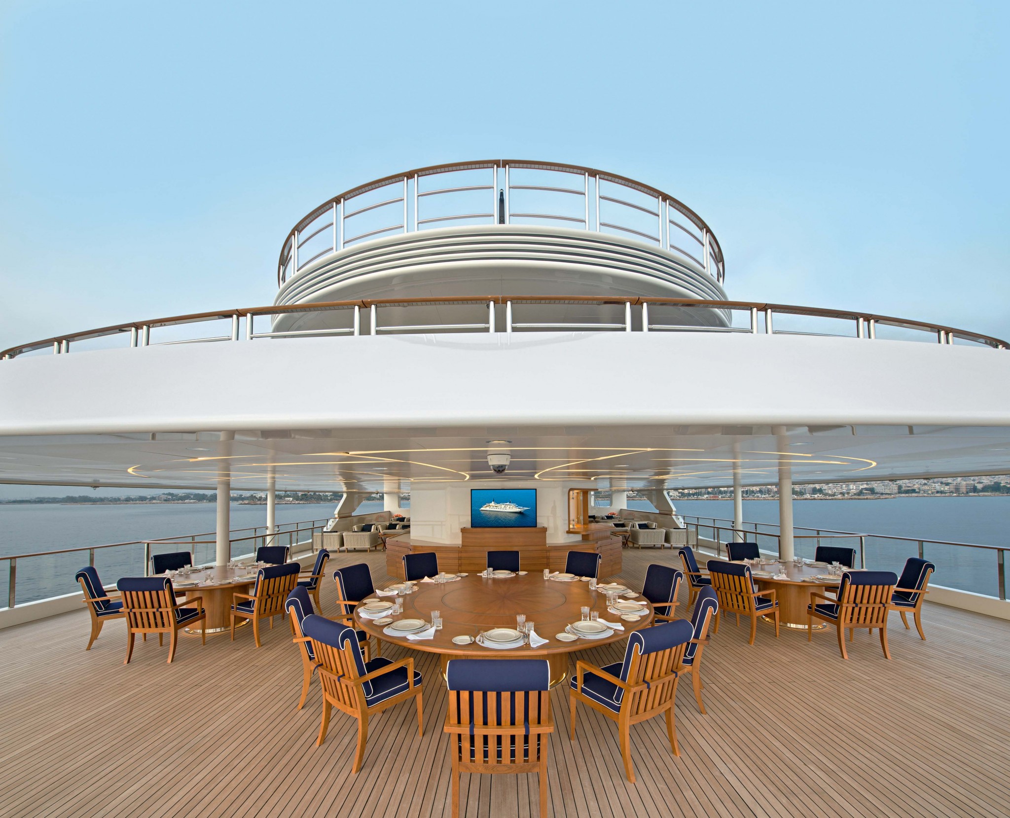 Беспрецедентный масштаб проекта: одна только столовая рассчитана на 44 персоны. Парадный холл — площадью 400 квадратных метров. Кают — 23! Не удивляйтесь: речь идёт не о загородной резиденции, как можно было бы подумать, а о плавучем доме — суперъяхте M/Y Dream. Вот уж действительно: большому кораблю—большое плавание!