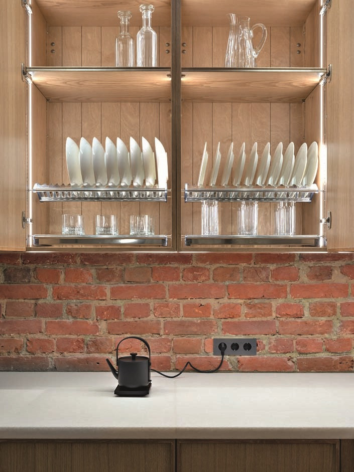 Но атмосфера интерьера вряд ли получилась бы такой, если бы не логичная планировка, четко разделяющая приватные и парадные зоны, и не система «умный дом», сопровождающая ежедневные жизненные сценарии заказчиков. «Золотое правило: в автоматизации главное не усложнять, — говорит Анастасия. — В этом проекте мы реализовали его с помощью системы закрытого протокола Lutron. Это интеллектуальное управление светом и шторами: достаточно двух нажатий на планшете, чтобы полностью трансформировать пространство под настроение заказчика. Интерфейс программируется индивидуально, учитывая привычки и сценарии конкретного человека — вплоть до комфортной ночной подсветки. Гибкость системы позволяет проработать автоматизацию под любые задачи, делая дом по‑настоящему удобным».