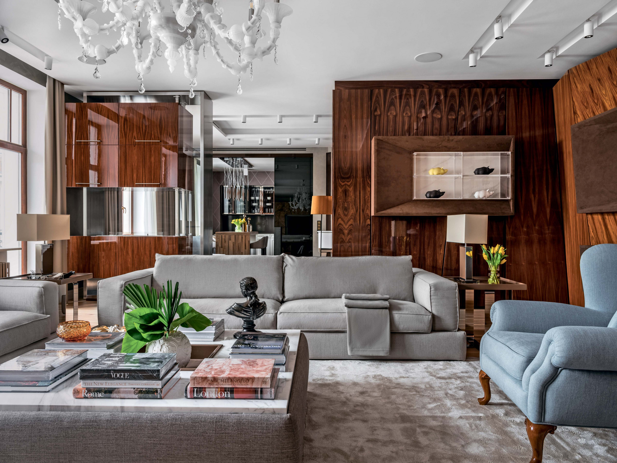Многогранный и статусный интерьер просторной квартиры в центре столицы команда студии «А+А» создала для большой семьи с тремя детьми