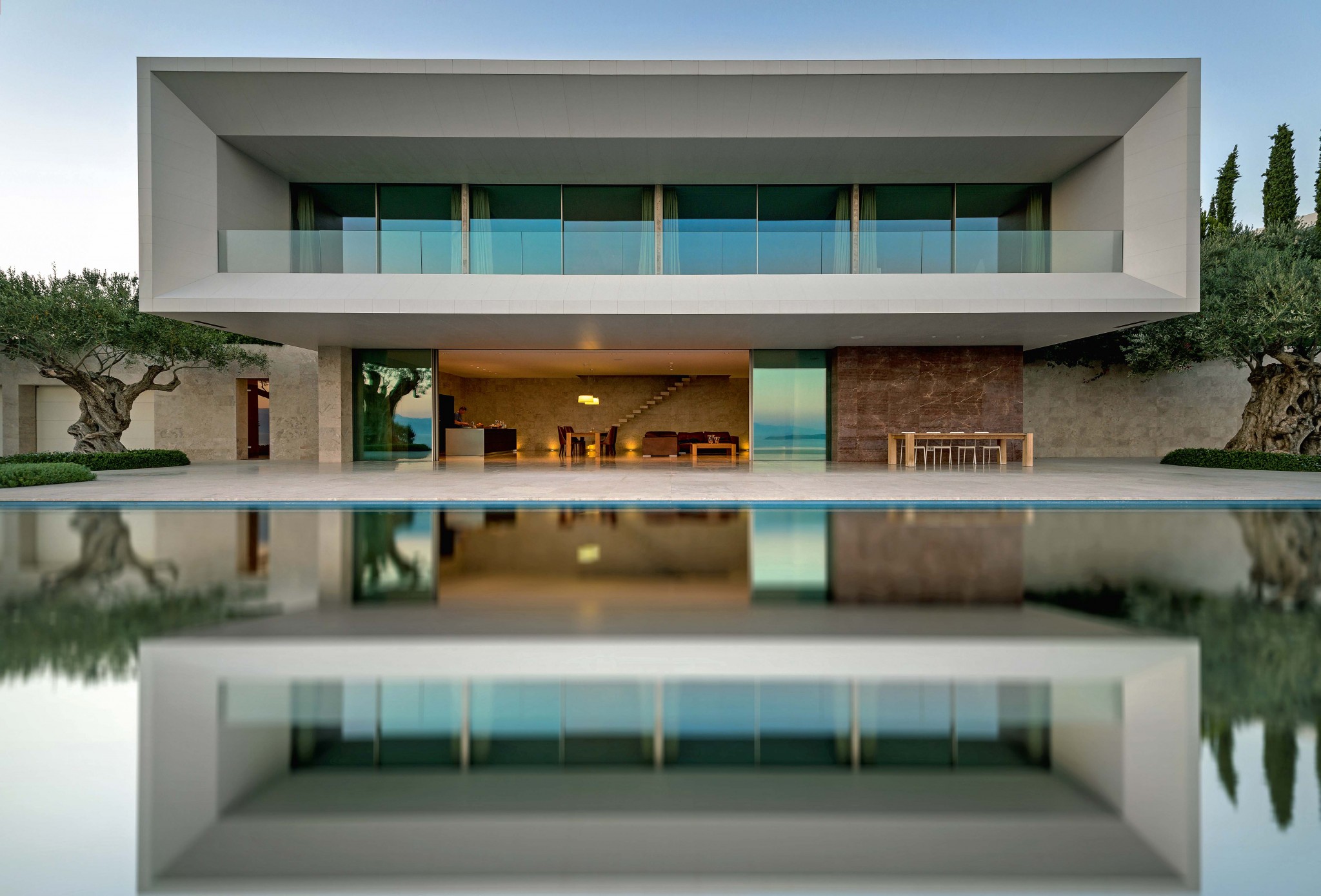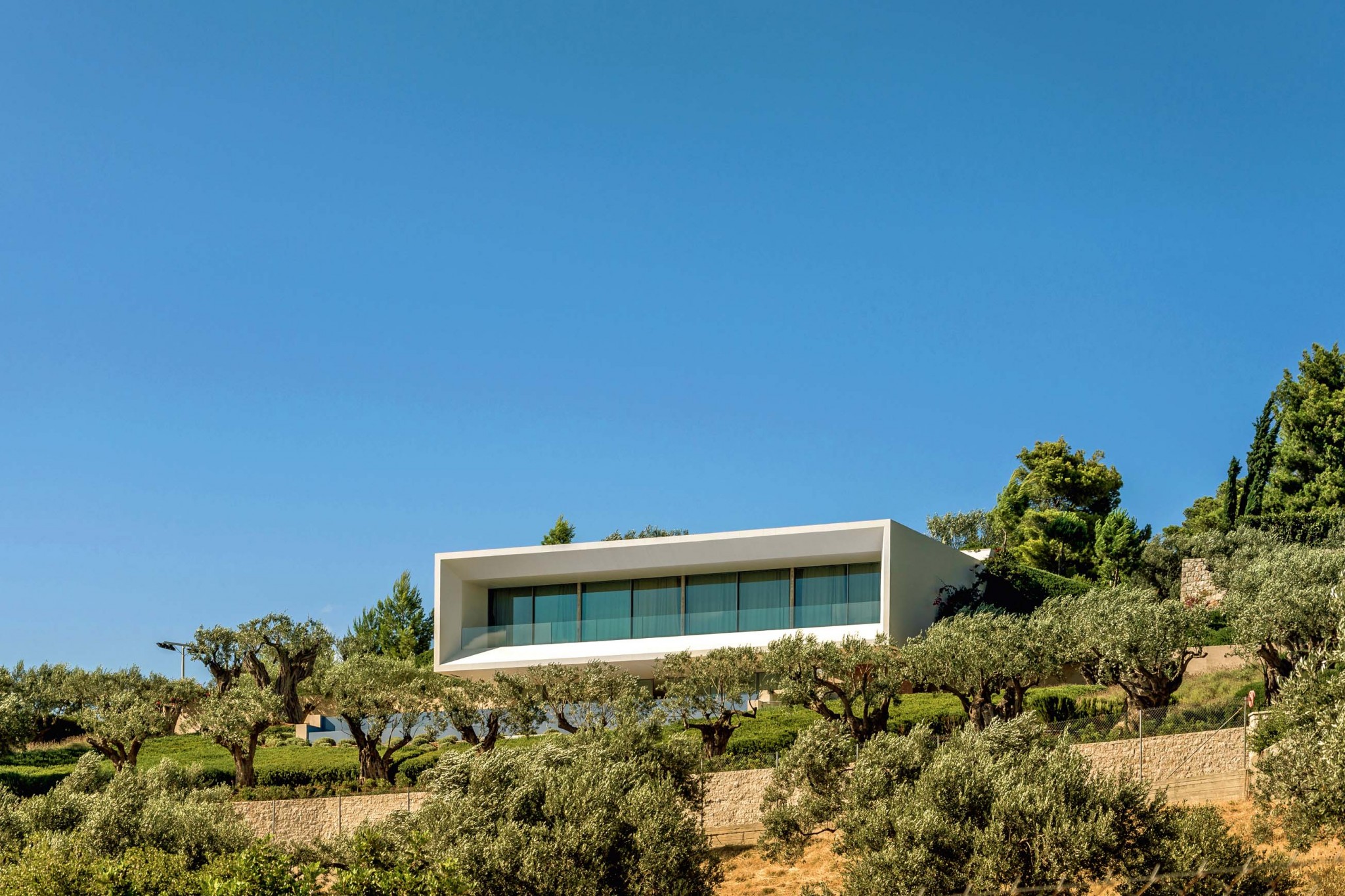 Автор проекта Сергей Федотов: «Дом расположен в известном курортном месте Порто–Хели на греческом полуострове Пелопоннес. Заказчики приобрели относительно небольшой участок на вершине холма, но продуманная эргономическая планировка позволила свободно разместить там дом площадью 400 квадратных метров, два гаража, бассейн, теннисный корт, дом для гостей, турецкую баню, просторную лаундж–зону, оливковую рощу и небольшой фруктовый сад».