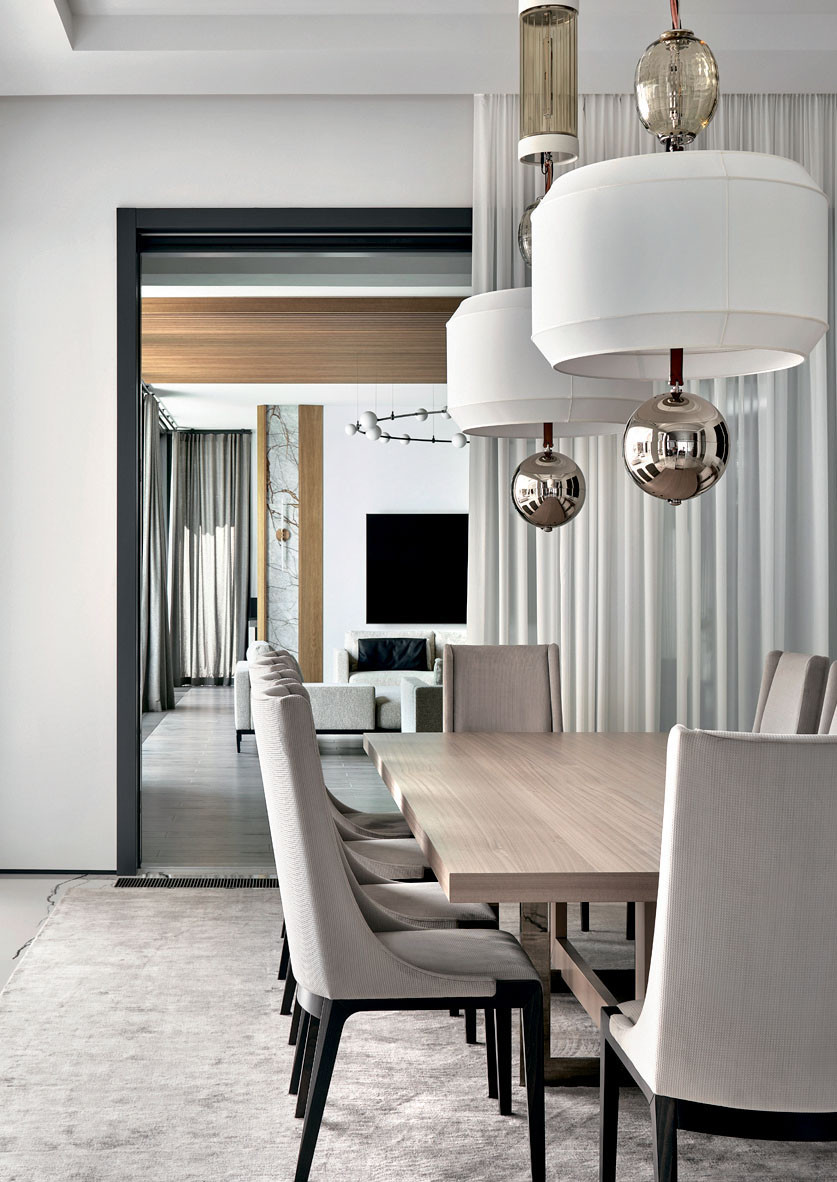 В светлом элегантном интерьере семейной резиденции ничто не напоминает о том, что дом построен из сосны — это возможно благодаря современным технологиям