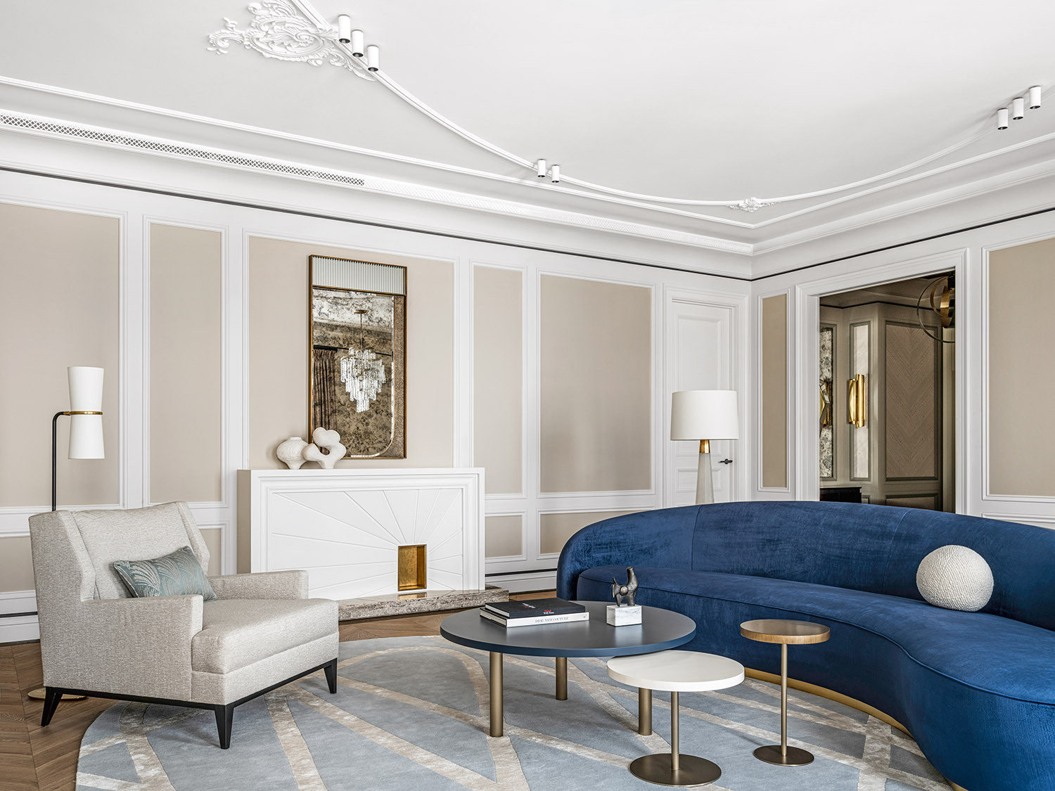 Заказчики — люди разносторонние и увлекающиеся. Любят посещать театральные и музыкальные постановки, часто бывают на модных показах, ведь профессия супруги связана со сферой моды и фэшн–съёмками, много времени она проводит в Европе, в частности в Париже. У них есть загородный дом, и эту квартиру в центре Москвы они приобрели в качестве «уютного островка посреди мегаполиса», когда хочется остаться в городе после работы, встретиться с друзьями или побывать на светских раутах. Ближе познакомившись с заказчиками, узнав их предпочтения, вкусы, образ жизни и любимые места, дизайнеры сразу начали лучше представлять себе будущий интерьер: выверенные линии, местами строгие и лаконичные, вневременные формы и цвета, люксовые отделки и фактуры. «Мы предложили хозяевам лаконичный и созерцательный интерьер, где нет лишних деталей и мишуры, где каждый предмет на своём месте, — замечает Тарас Безруков. — Элементы османовского стиля добавляют ему элегантности, а современные предметы обстановки — актуальности. Палитра очень спокойная, умиротворяющая, без громких, кричащих оттенков. Единственный цветовой акцент — диван благородного тёмно–синего цвета, а остальные тона дополняют его». «Современная классика, по нашему мнению, должна быть именно такой — лёгкой, лаконичной, опирающейся на исторический контекст и традиции и переосмысленная с точки зрения современного дня», — добавляет Стас Самкович.