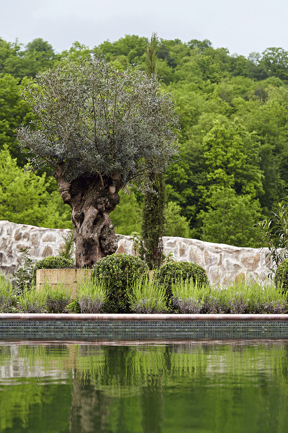 Уникальная усадьба, где взглядом сразу можно охватить и море, и горы со снежными шапками вершин, заставляет вспомнить об одном из заметных интерьерных трендов последних лет — «рай на земле». Здесь, на этой южной вилле, тема переосмыслена масштабно — в целостном объеме дома и сада. Вместе они производят сильное впечатление: ландшафт радует глаз сочетанием пейзажного и регулярного «версальского» стилей, контрастом между изяществом растений и нарочитой грубостью природного камня, а главный дом словно вырастает из пейзажа. Гостиная раскрывается в сад, на террасу у бассейна: там дизайнер предусмотрела специальные режимы освещения, меняющиеся световые сценарии и нежные подсветки. «Проект интерьера виллы, а затем и работа по реконструкции фасадов зданий комплекса и ландшафтный дизайн территории усадьбы мы выполнили для наших клиентов, которые ценят красоту, комфорт и удобство, — рассказывает автор проекта Екатерина Ловягина.— Они дали мне задание сделать проект в стиле прованс и реализовать его так, чтобы все было по‑настоящему». Тут надо сделать небольшое отступление и вспомнить, что называли стилем прованс в нашей стране начиная с 2000‑х: светлый изящный интерьер с мебелью в стиле Людовиков XV и XVI. С истинным стилем французского прованса — брутальным, грубоватым, крепко стоящим на земле — он не имел практически ничего общего. Вот почему эта работа бюро Екатерины Ловягиной значима не только как отдельное высказывание: это важная веха на пути эволюции стиля прованс, как мы его понимаем в России.