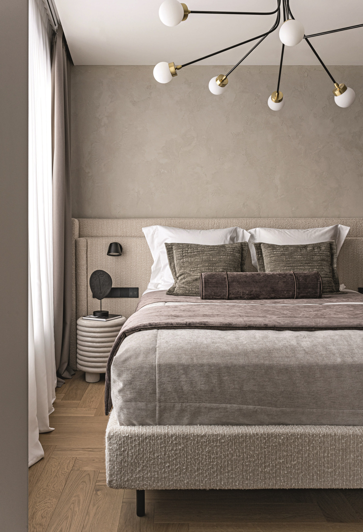 Квартира с панорамным видом на Ижевск находится в знаковом для столицы Удмуртии доме — жилом комплексе бизнес-класса, который стал визитной карточкой города. Оформить интерьер Маргариту Мельникову пригласила владелица — давний деловой партнер и руководитель мебельной фабрики Cloud Ольга Быкова. «Для нас было огромной честью, что из всего многообразия дизайнеров-партнеров Ольга выбрала именно нас. С брендом Cloud мы в бюро Marmel Home знакомы давно и с гордостью следили за его развитием от локального производства до известного по всей России и в странах СНГ бизнеса по производству мягкой мебели. За этим успехом стоит колоссальная работа, напряженный график и высокий темп жизни. Поэтому квартира должна была стать для ее хозяйки островком спокойствия и безмятежности, местом, где человек может отдохнуть, восстановить свои внутренние ресурсы», — рассказывает Маргарита. Так поя вилась идея воспроизвести в интерьере расслабленную эстетику океанского побережья, но с поправкой на городской ком форт, функциональность и особенности умеренного климата. Поэтому современную и лаконичную основу интерьера до полнили элементы в духе бохо и экостиля.