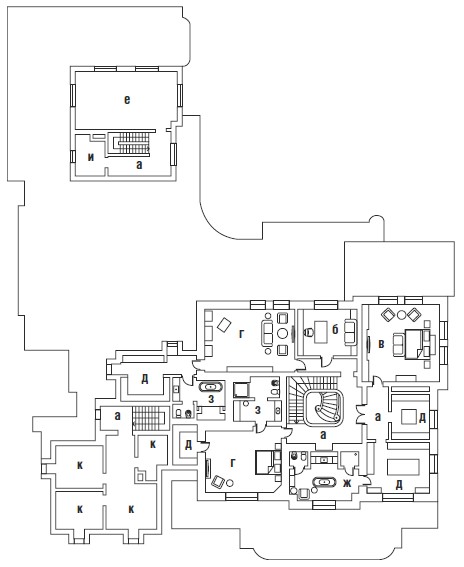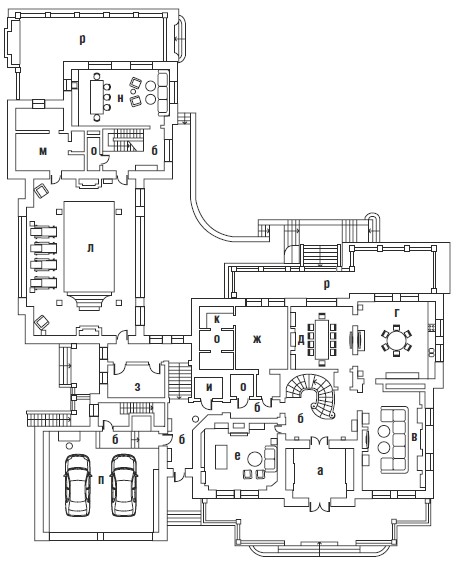 Загородный дом в стиле шале расположен в посёлке Княжье Озеро на Новорижском шоссе. Начали с того, что снесли и заново отстроили третий, мансардный этаж, переоформили входную группу, сделали террасы и пристройки: гараж с комнатами для проживания персонала над ним, бассейн с зоной отдыха и зоной барбекю, сауну. Первый этаж отвели под общественную зону с гостиной, кухней–столовой и кабинетом. На втором этаже — ещё один кабинет и приватные помещения: спальня хозяев с двумя гардеробными (женской и мужской) и две детские комнаты с собственными санузлами и гардеробными. Заказчики — любители собирать у себя дома друзей, поэтому для них обустроили два гостевых блока.