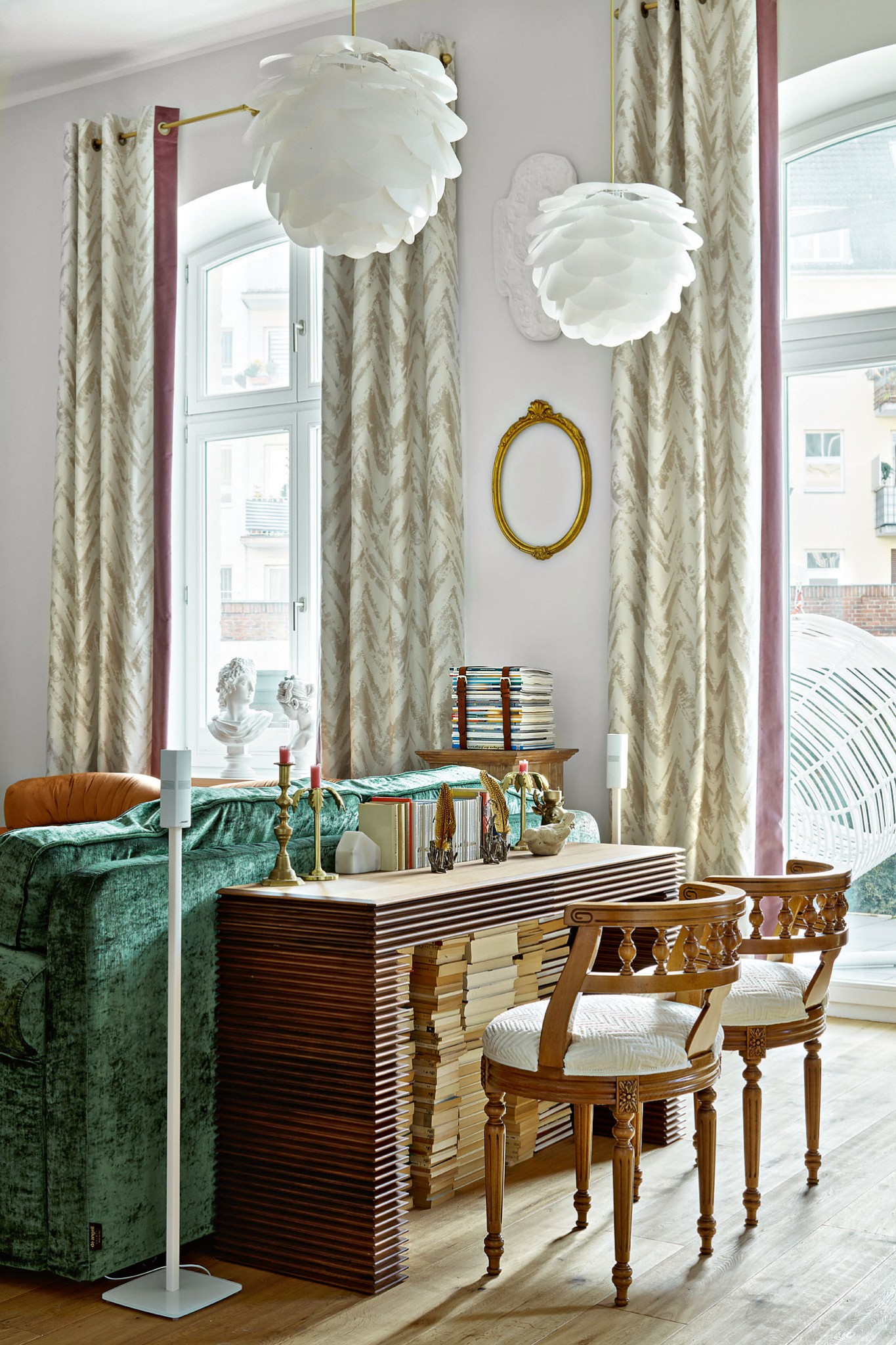 Хороший интерьер немыслим в отрыве от окружения. Эта уютная, элегантная и вместе с тем какая‑то очень задорная квартира расположена в немецком Дюссельдорфе, в районе Альтштадт, где кипит бурная жизнь, историческая застройка перемежается ультрасовременными барами из стекла и стали, а на улицах всегда много ярких и весёлых людей. Да и сам дом с богатым прошлым: раньше в этом псевдоготическом здании с большими арочными окнами была школа, а в 2014–2016 годах его перестроили в жилой комплекс с сохранением исторических фасадов. Одну из квартир купили постоянные заказчики дизайнеров и попросили превратить её в бутик–апартаменты для сдачи в аренду. Это определило концепцию проекта, а настроение задали окружающий контекст, полное доверие заказчиков, которые делают с дизайнерами уже четвёртый проект, и любовь Ильи и Светланы к цвету, который здесь, впрочем, вполне дозирован. «Нам хотелось получить яркий, запоминающийся образ без характерного для нас плотного использования цвета. Кроме того, важно было создать уютную, домашнюю атмосферу. Всем хотелось, чтобы квартира выглядела обжитой, так, словно здесь жило уже несколько поколений», — говорит Илья.
