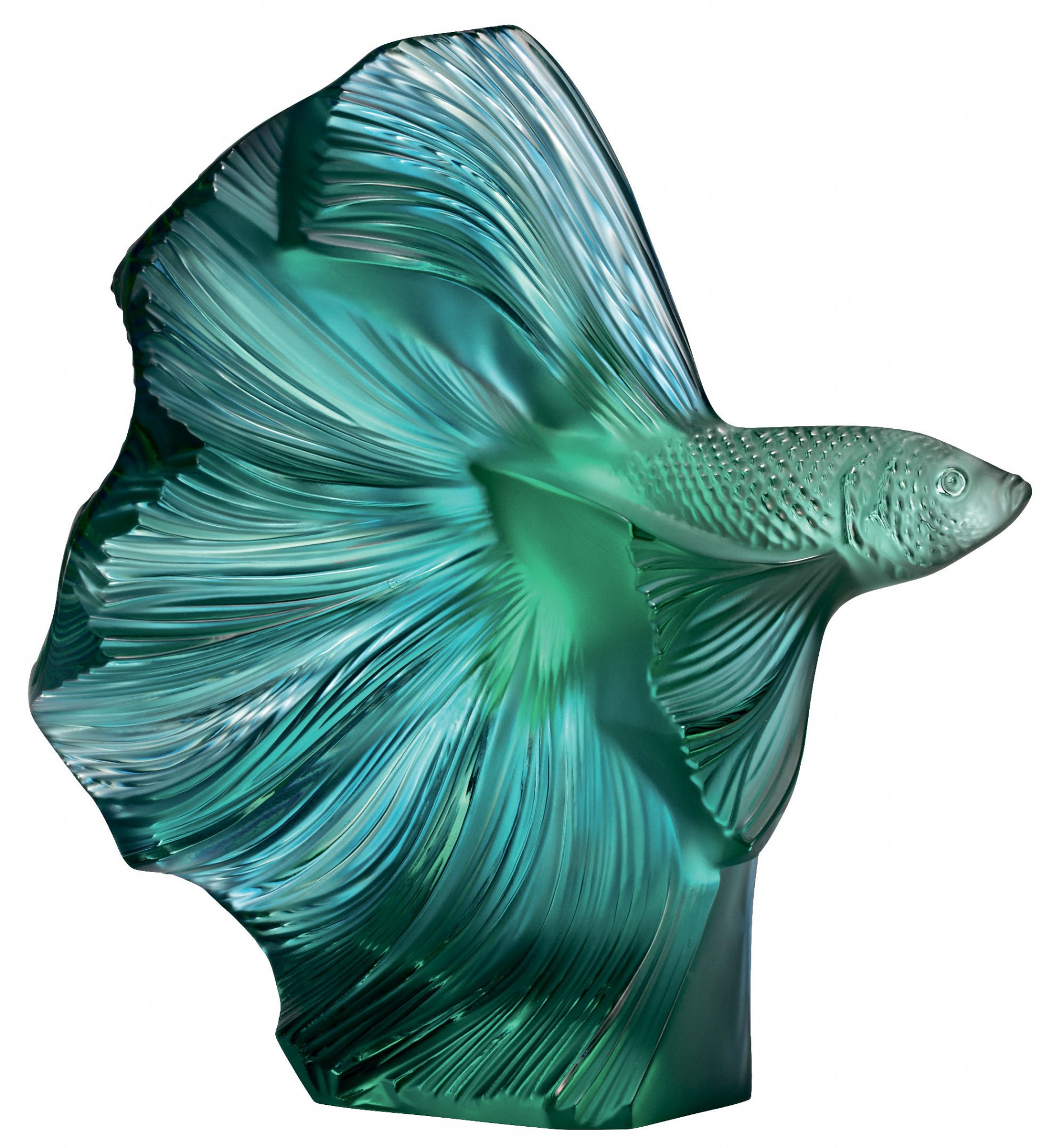 Новая коллекция LALIQUE, представленная в январе в Париже, посвящена обитателям морских глубин. Она названа Aquatique и включает в себя скульптуры и вазы, изображающие диковинных рыб. Чтобы подчеркнуть их красоту, мануфактура специально ввела два новых цвета, экспериментируя с химическим составом хрусталя. В итоге получились глубокие, сложные оттенки с эффектом деграде (тонкого перехода цвета).