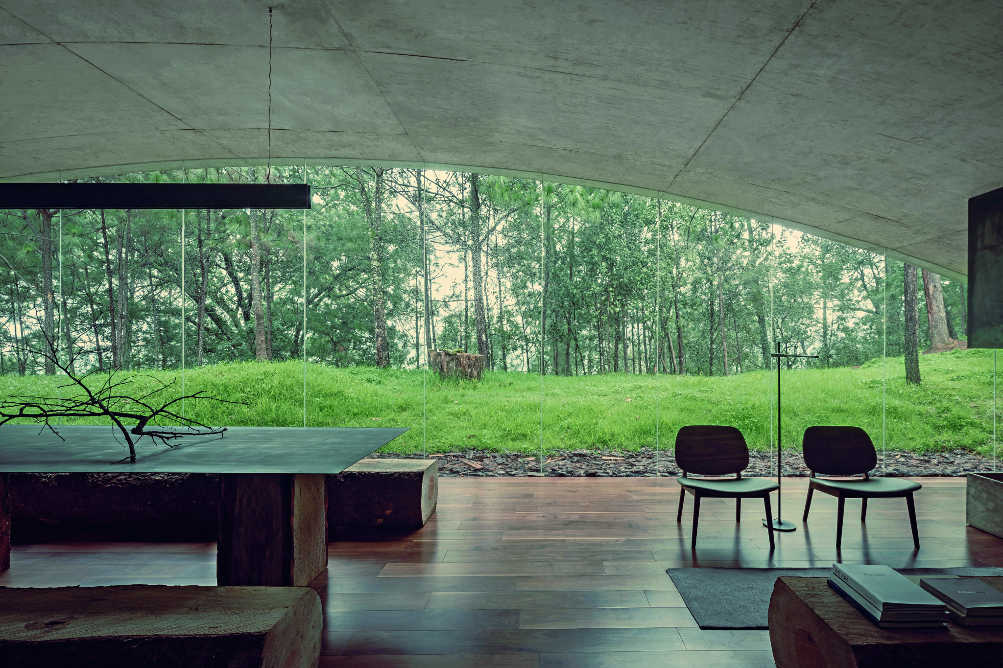 В этом проекте всё сошлось: настрой заказчика, творческое кредо архитекторов, характер местности, где находится дом. Город Морелия недалеко от Мехико славится своими туманами и загадочной, почти инфернальной атмосферой. Она-то и подкупила заказчика. Он просил архитекторов «силами» стали и бетона создать для него укрытие, особое место, где бы он чувствовал себя защищённым, как бы тревожно ни было в мире. (Проект реализовали в прошлом году, и такие мысли, очевидно,—отголосок пандемии.) Архитекторам вспомнился совсем детский образ: когда тебе, такому маленькому, страшно, ты забираешься под одеяло и уже оттуда, из совершенно, как тебе кажется, безопасного места краем глаза следишь за развитием событий. Само бюро специализируется на таких проектах с философским подтекстом, что отражено уже в его названии: буква H не читается в испанском и потому в испаноязычных