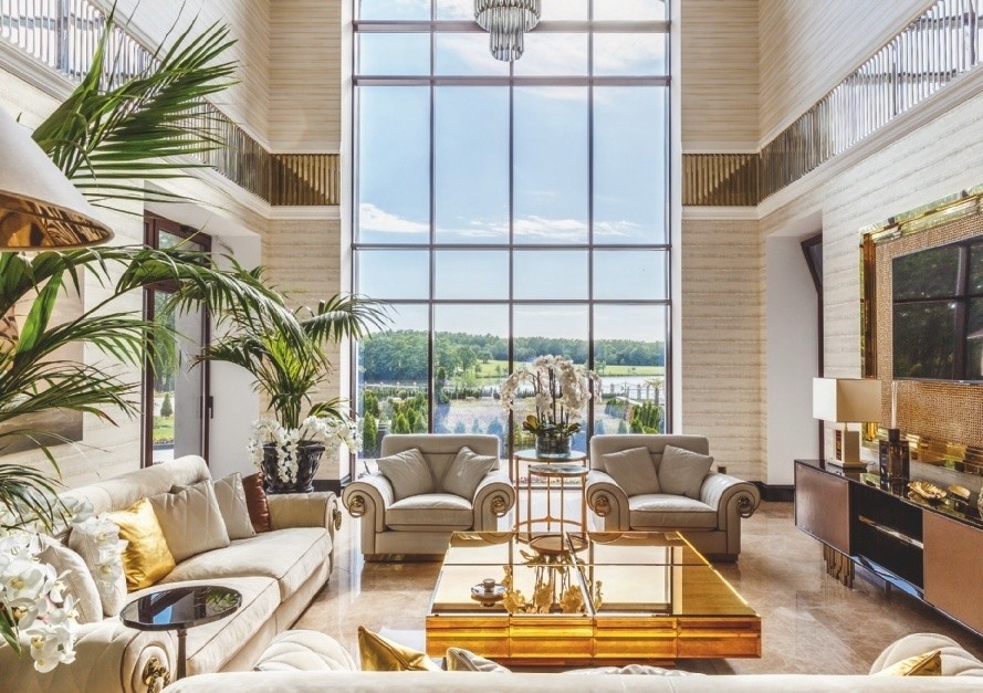 Дизайнер Ксения Ступко оформила интерьер загородной резиденции под Краснодаром в роскошно–торжественной стилистике, вдохновлённой эпохой «Великого Гэтсби»
