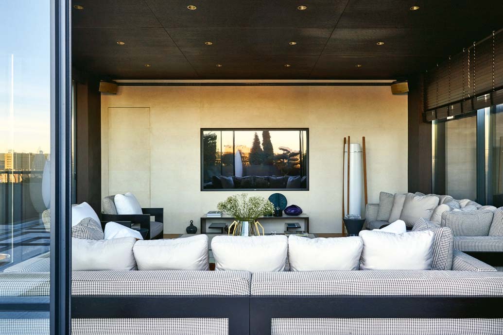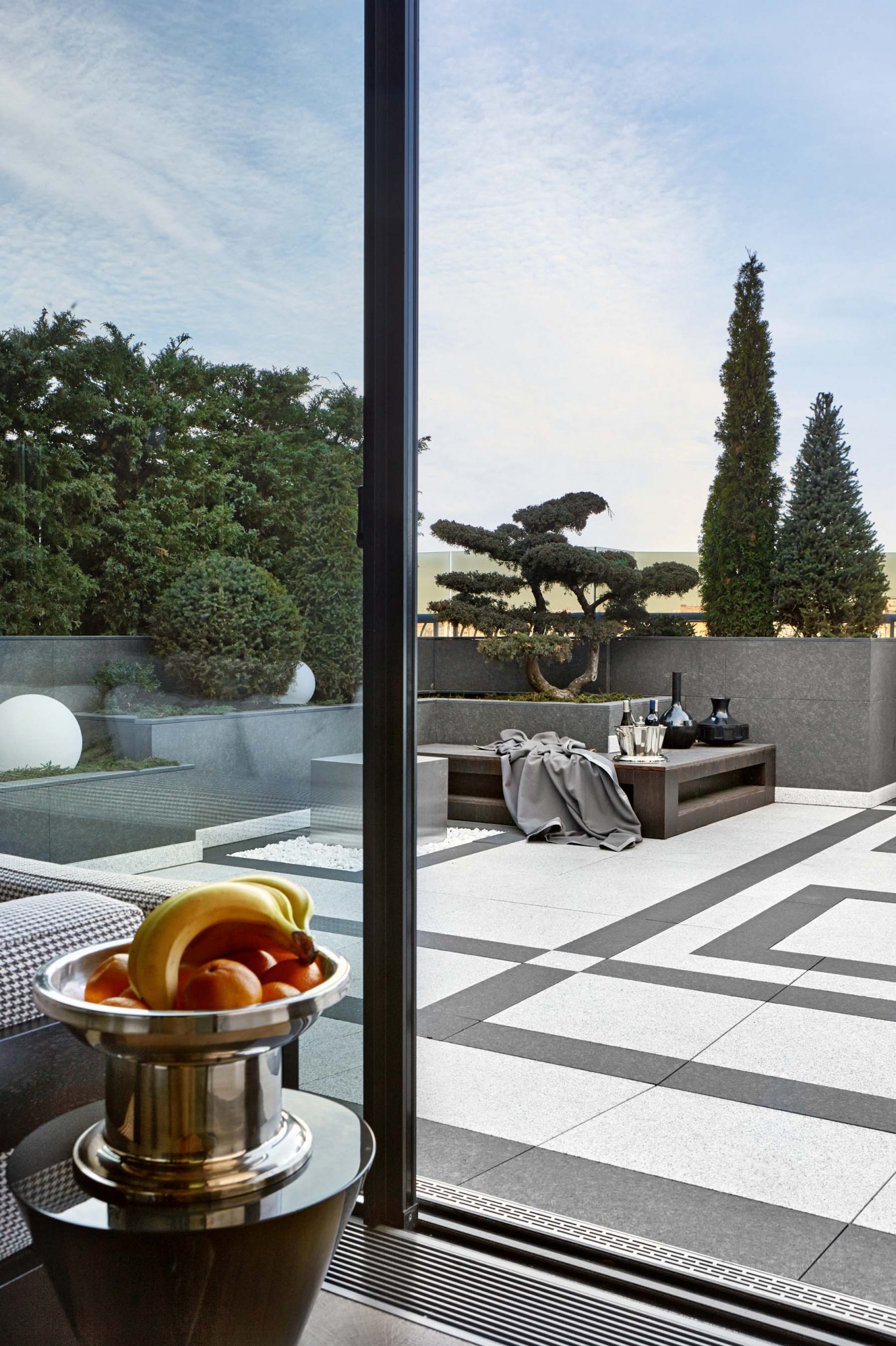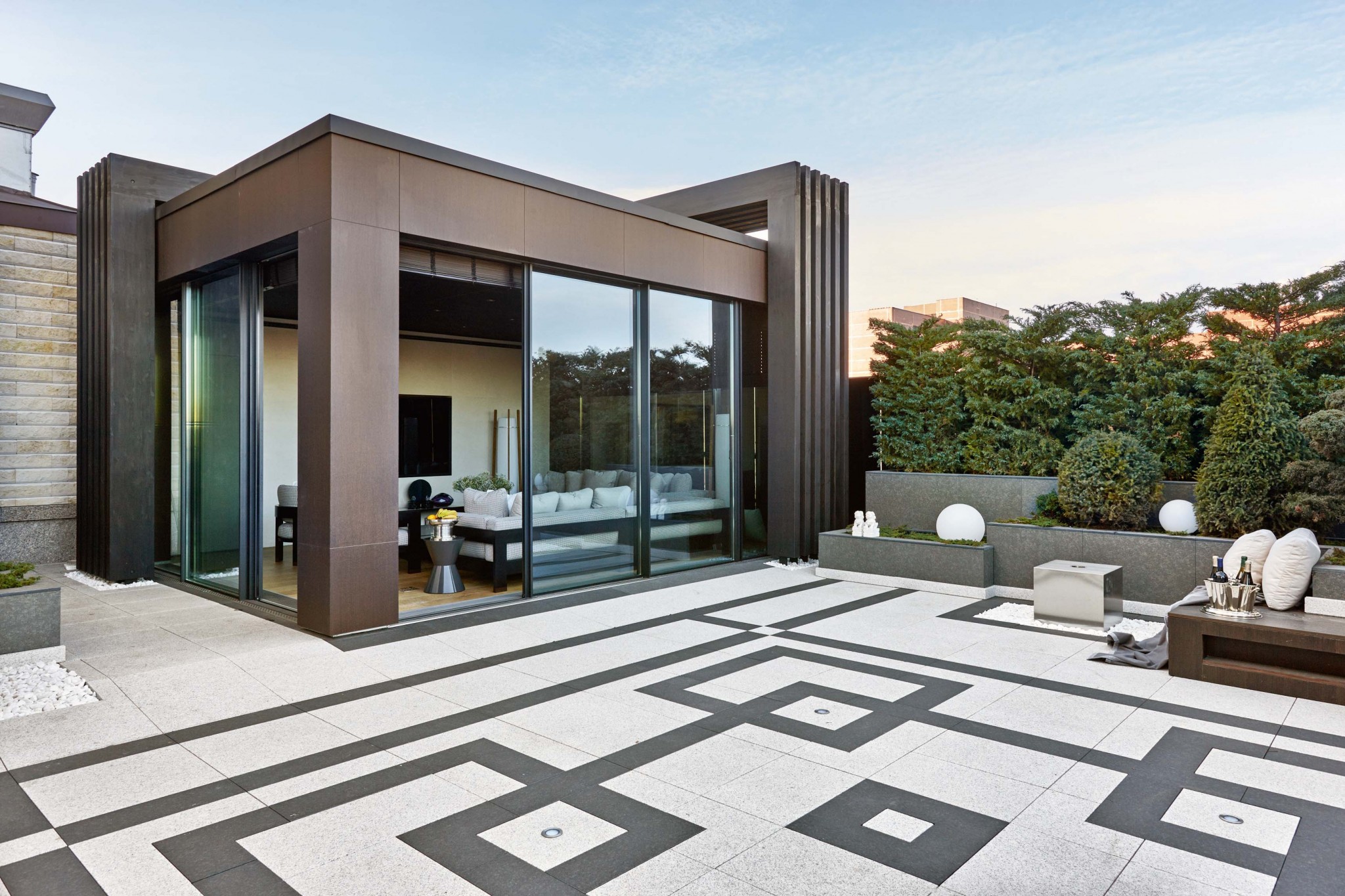 Архитектор Анна Сахарова: Мы воплотили желание заказчика иметь свой японский сад, создав полноценный отапливаемый павильон и открытую террасу на крыше московского клубного дома. Летом там можно удобно отдохнуть в шезлонге или организовать шумную вечеринку. Впрочем, собираться можно и зимой: раздвижные стеклянные стены павильона сохраняют тепло в холодное время года. Вся терраса отделана натуральным гранитом, в павильоне на полу — тёплый пол из керамогранита с фактурой дерева. Для всесезонного японского сада с фонтаном были подобраны растения с учётом нашего климата, они не сбрасывают листву».