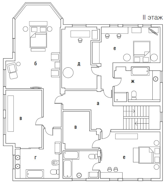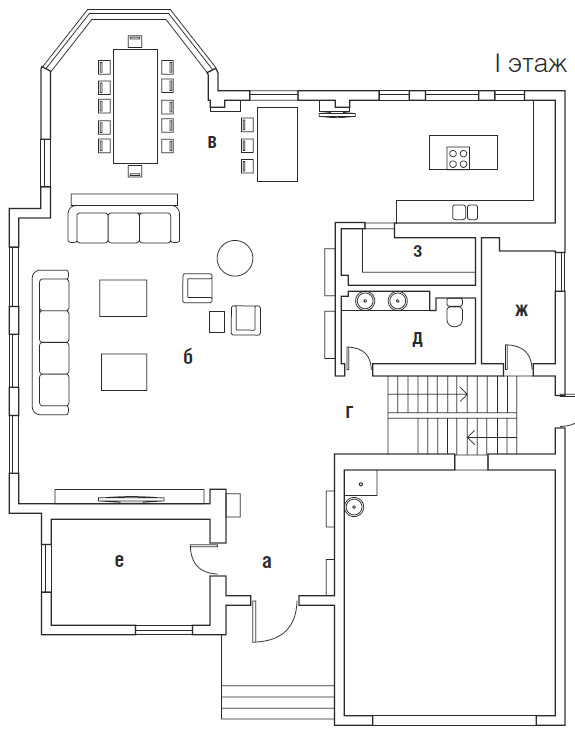 Максимально открытым дизайнеры сделали первый этаж — общественный. Здесь разместили несколько функциональных зон, но принципиально не отгораживали их стенами, чтобы члены семьи свободно общались друг с другом и проводили время вместе. Зонирование спланировали с помощью освещения и расстановки мебели. Атмосферу уюта и тепла (во всех смыслах слова!) создаёт камин — настоящий семейный очаг и место сбора по вечерам. А вот верхние этажи — частные, с отдельными комнатами: на втором и третьем расположены комнаты троих детей с гардеробными, мансардный этаж занимают гостевая, игровая и спортзал. Спортом занимаются все — поэтому проектировали зал не для красоты, а для дела. «Вообще все члены семьи — люди разносторонние, — замечает Виктория Николаева. — Среди их увлечений и занятий — и спорт, и музыка, и наука».