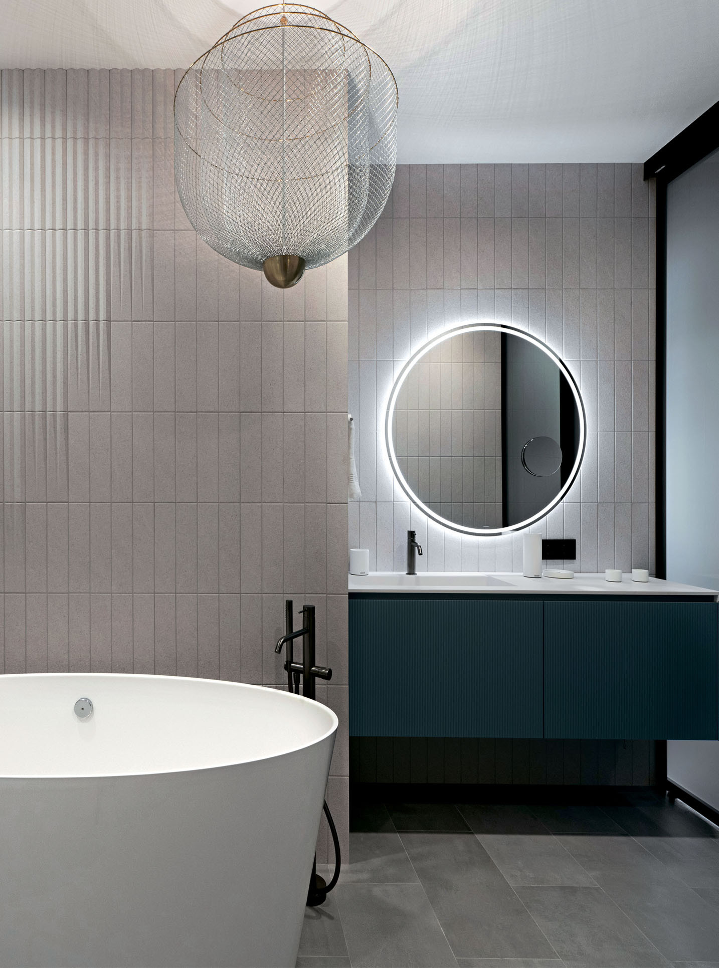 Е. Б.: В квартире смонтировано сложное и современное климатическое оборудование и электрокарнизы, которыми с легкостью можно управлять через мобильное приложение либо голосом через колонки «Алисы». Для основного освещения мы использовали трековую световую систему Infinity Air с возможностью размещения светильников внутри одной из линий интегрированных вентиляционных каналов. Воздух от систем приточно-вытяжной вентиляции, кондиционирования и увлажнения поступает в помещение благодаря специальным дефлекторам.