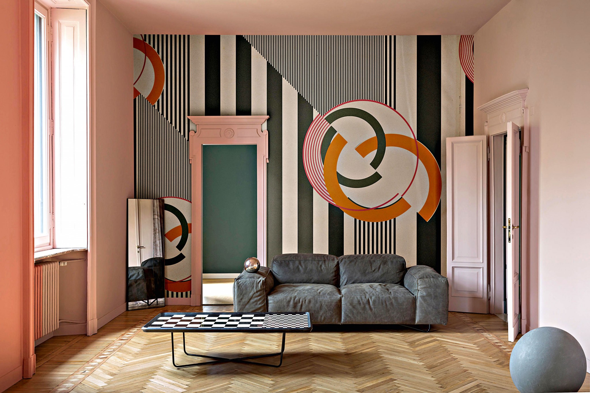 Внимание: мы становимся свидетелями нового этапа. Тема геометрии в дизайне текстиля и обоев разворачивается в неожиданной плоскости: обои, ковры и текстиль в большей мере, чем когда‑либо, становятся частью пространственных решений. Достаточно декорировать стену обоями с масштабной композицией в духе супрематизма, как, например, у WALL&DECÒ, — и вот оно, готовое решение интерьера, готовая матрица, в которую надо только подставить недостающие элементы — мебель и аксессуары. Формы, оттенки, стиль — эти подсказки уже содержатся в орнаменте. Стена, оклеенная обоями от SKINWALL, — это уже словно и не стена вовсе: кажется, что это территория пульсирующего, объёмного цифрового пространства, портал, ведущий в другое измерение. Оп–арт, «оптическое искусство», — стиль, который ещё не так давно был прерогативой немногочисленных любителей, стремительно увеличивает ряды своих поклонников. Кто бы мог ожидать от английской марки SANDERSON, ассоциирующейся у нас с классикой и романтикой, обоев в стиле оп–арт? И тем не менее вот они — со словно движущимся, меняющим цвет орнаментом цифровой эпохи. Такая стилистика может быть