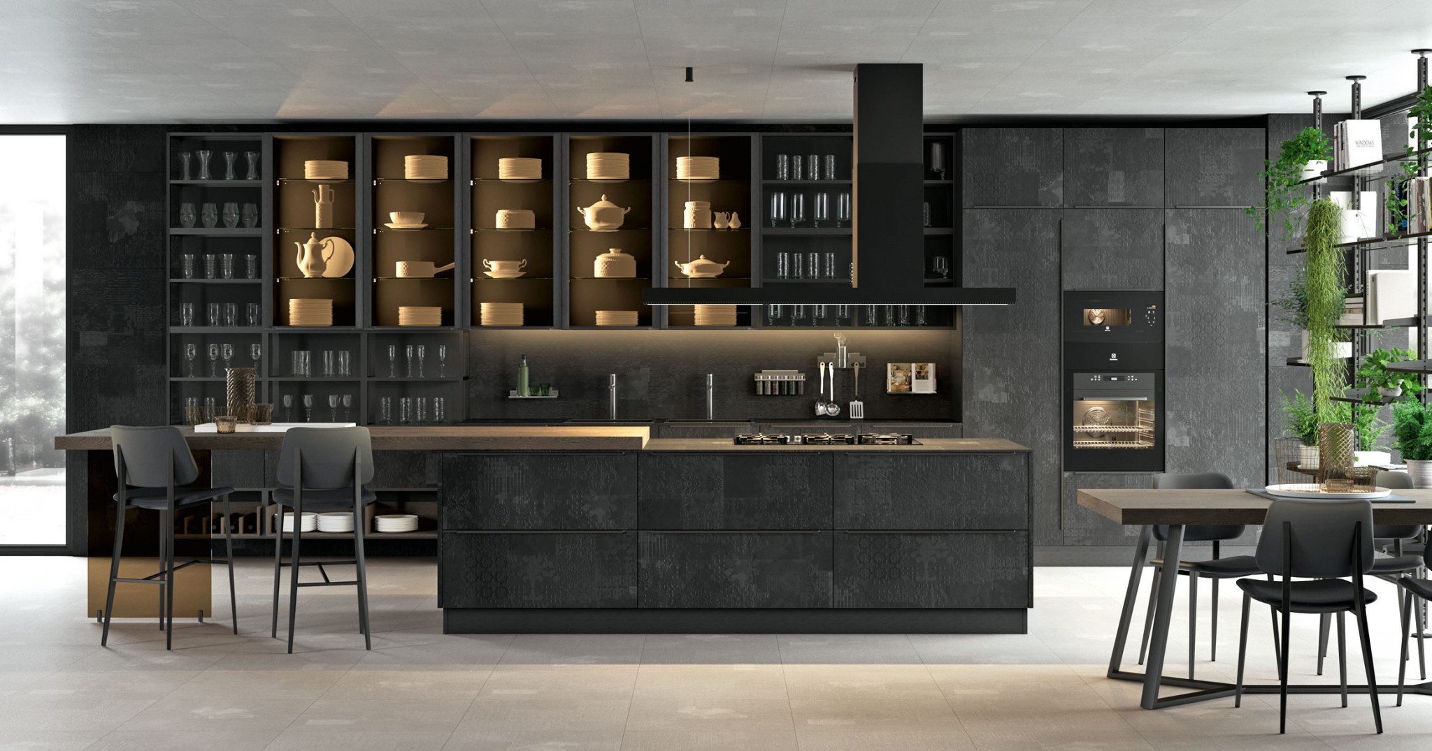 В этом году фабрика Cucine LUBE дополнила свою популярную модель кухни Clover новыми керамическими фасадами. Они изготовлены на базе коллекции керамической плитки Dechirer XL фабрики Mutina, дизайн для которой разработала Патриша Уркиола. Кухня будет выпускаться в трёх цветах: «графит», «белый гипс», «песок». www.cucinelube.it