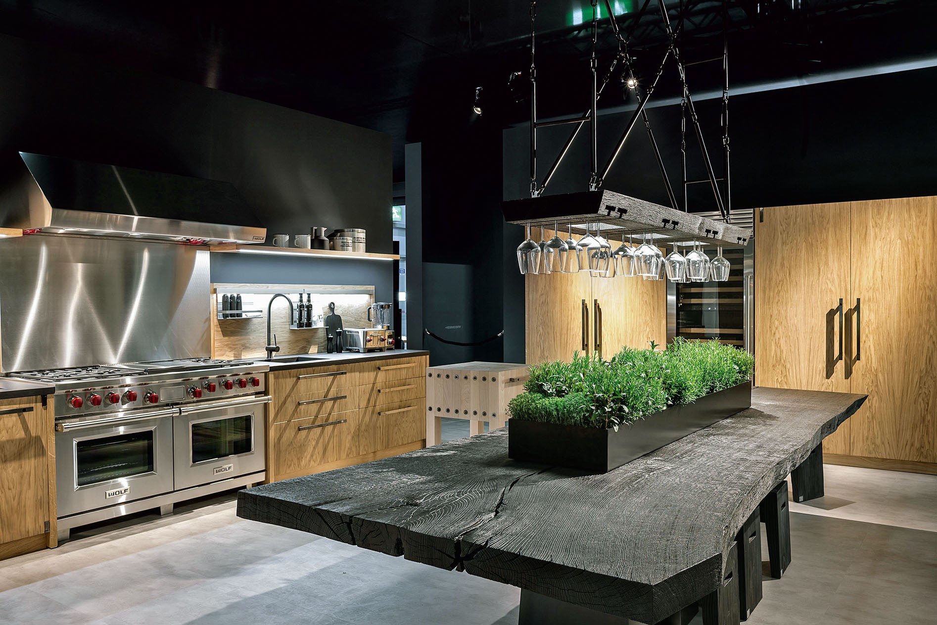 Громкая премьера 2018 года— кухня Grangusto от итальянской фабрики Riva 1920 и дизайнера Марка Садлера. Она оборудована профессиональной техникой, но её главная особенность—мощный остров, выполненный в виде консоли с металлическим основанием и столешницей из цельного куска дерева. Ведь фишка фабрики— работа с деревом, и в дизайне кухни это продемонстрировано в полной мере. Представительство W.W.T.S.
