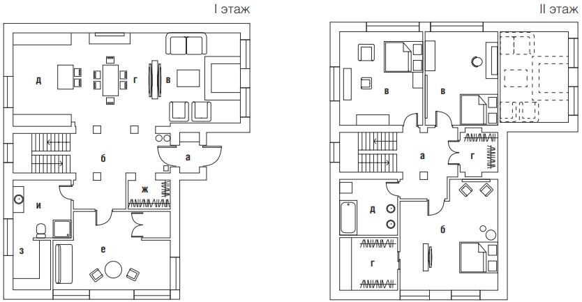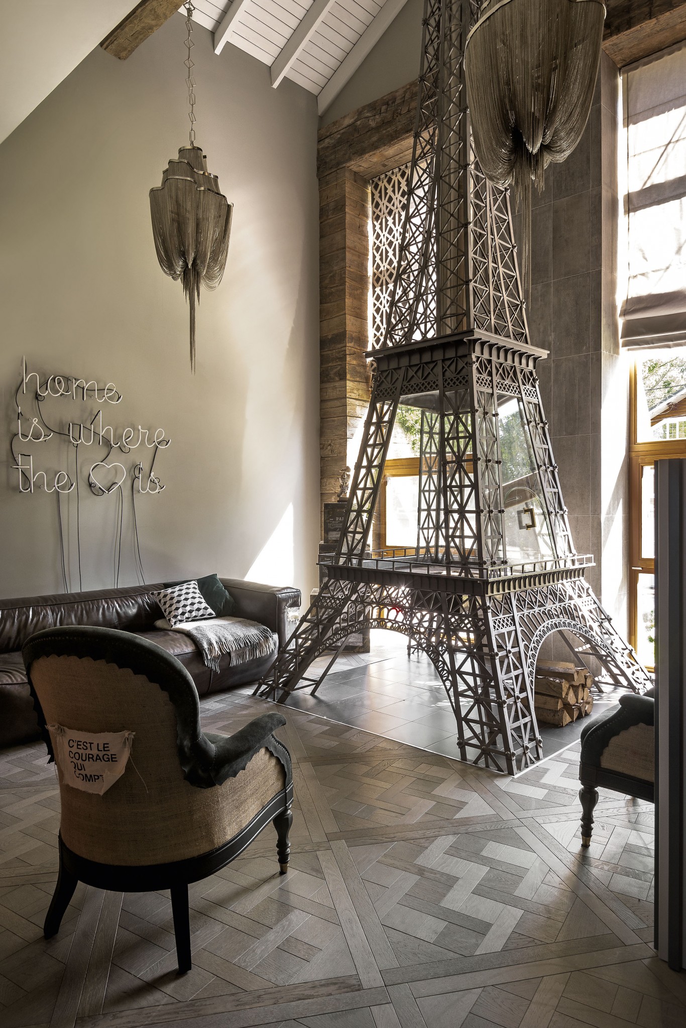 Процесс проектирования проходил в два этапа. Сначала дизайнер отрисовала планы дома, заложив второй свет и колонны (зачем они нужны, расскажем позже), набросала схему дома и отдала специалистам для разработки технической документации. Самую интересную и интригующую часть — дизайн, выбор материалов и предметов — оставила на «десерт». «Размышляя о будущем интерьере, я не могла собрать все мысли в единый концепт, поскольку хотелось попробовать многое, если не всё, но пришлось учесть, что со мной будут жить далеко не дизайнеры, — вспоминает Светлана Дикушина. — В тот момент стиль лофт был на самом пике популярности, мне тоже захотелось поиграть с ним на полную катушку, к тому же немногие заказчики согласились бы на такие смелые идеи. Но лофт — это грубо, скажете вы, а у меня двое маленьких детей. Тогда я решила замешать его с богемным андеграундом, это несколько смягчило брутальность лофтовой эстетики». В небольших