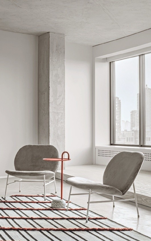 На фоне бетонных поверхностей эффектно и концептуально смотрится дизайнерская мебель