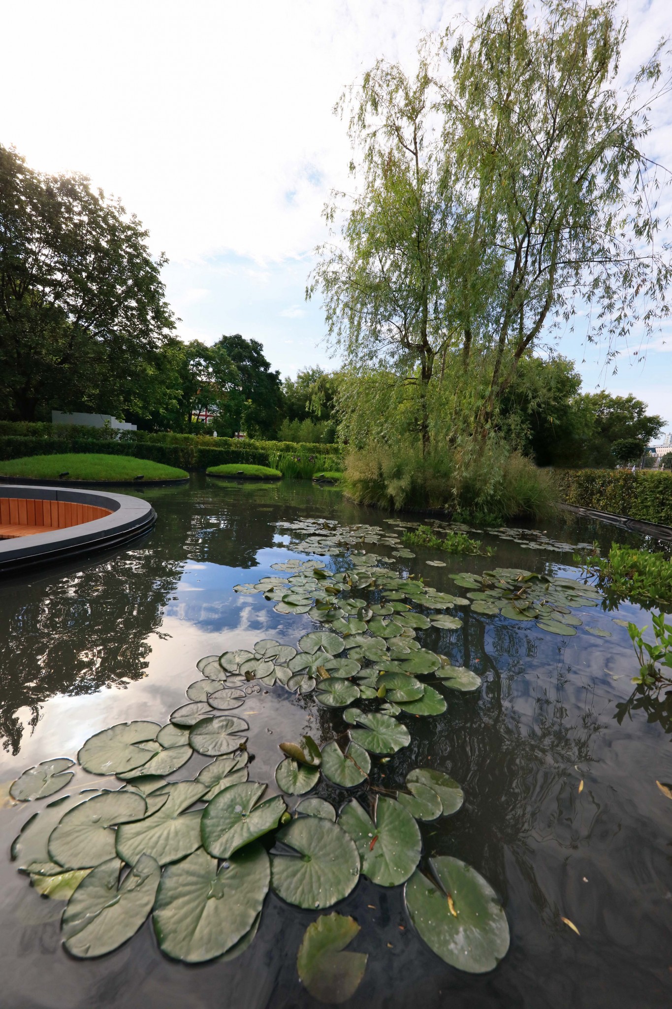 Этот сад задумывался как место отдохновения, где можно успокоить мысли и прийти к внутренней гармонии. Чтобы добиться этого, автор проекта ландшафтный дизайнер Иван Бугаев (BUGAEV Parks&Gardens) взял за основу планировки принцип золотого сечения, который с эпохи Возрождения ассоциируется с совершенством: архитектуры, человеческого тела, построения живописного полотна или скульптурной композиции. Расположение отдельных элементов сада просчитано до мелочей и формирует стройную геометрическую схему, где все части соотносятся друг с другом в определённой пропорции.