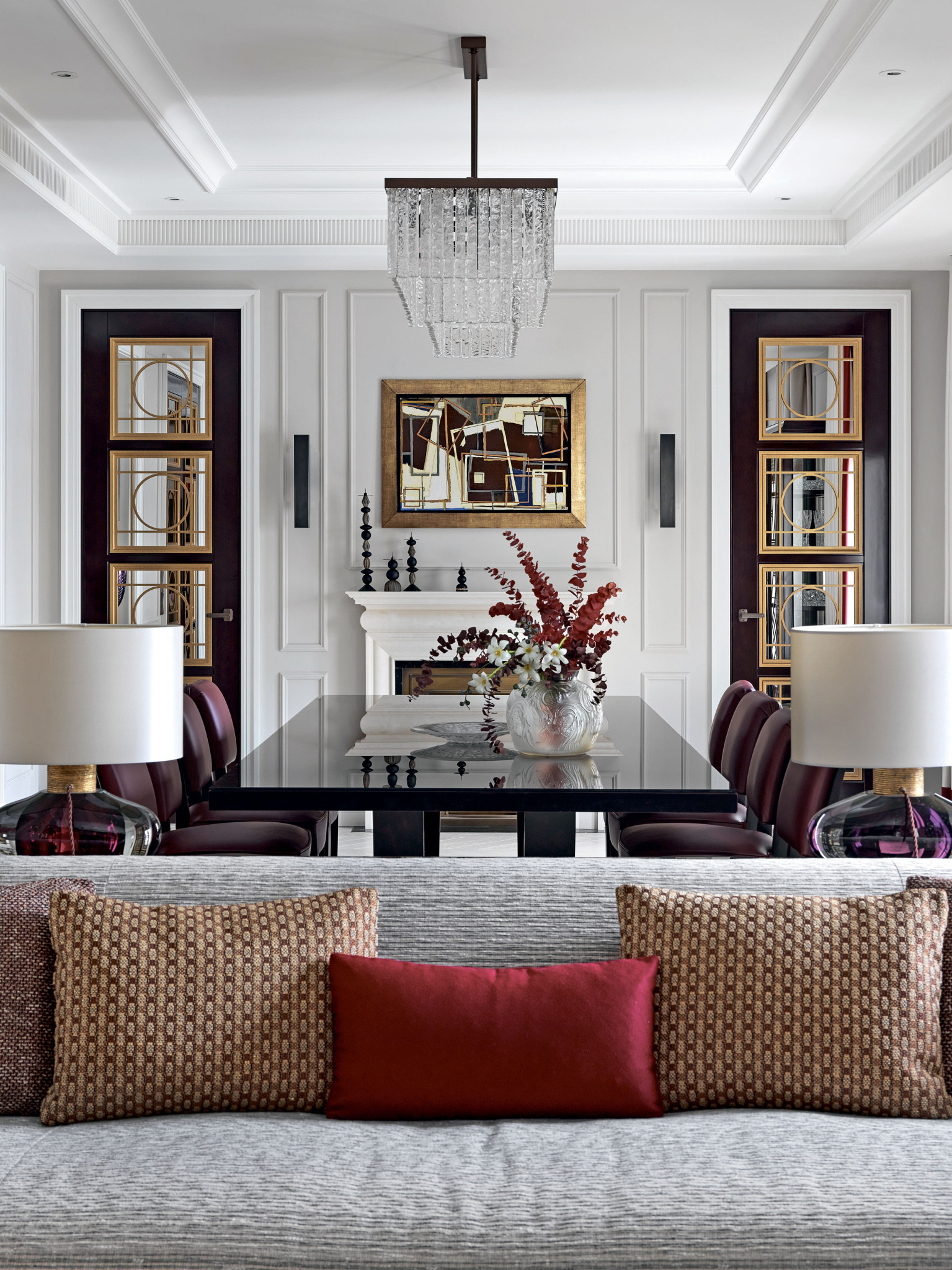 «Главным желанием заказчиков было, чтобы у каждой из девочек была своя спальня, — вспоминает автор проекта. — Так как семья большая и в гости часто приезжают родственники, одним из желаний также был большой стол и просторная гостиная, чтобы можно было проводить время за семейными обедами и ужинами, отдыхать и общаться в диванной зоне». Интерьер представляет собой современную авторскую интерпретацию ар-деко. Он получился утонченным, воздушным, наполненным и таким одухотворенным. К слову, надо сказать, эти черты присущи многим проектам Полины Пидцан. Но здесь они проявились особенно выразительно. «Я всегда вдохновлялась этим строгим, парадным, но в то же время таким уютным стилем, — размышляет Полина. — Для меня ар-деко — это внимание к деталям, за которыми стоит большой труд мастеров, архитекторов и дизайнеров. Это может быть строчка на диване, кант на шторах, ручная роспись стен или авторские предметы, изготовленные в единственном экземпляре. Интерьер в стиле ар-деко в первую очередь гармоничен. Он больше про сложность и продуманность деталей. Он точен во всем, начиная от дизайна и заканчивая реализацией».