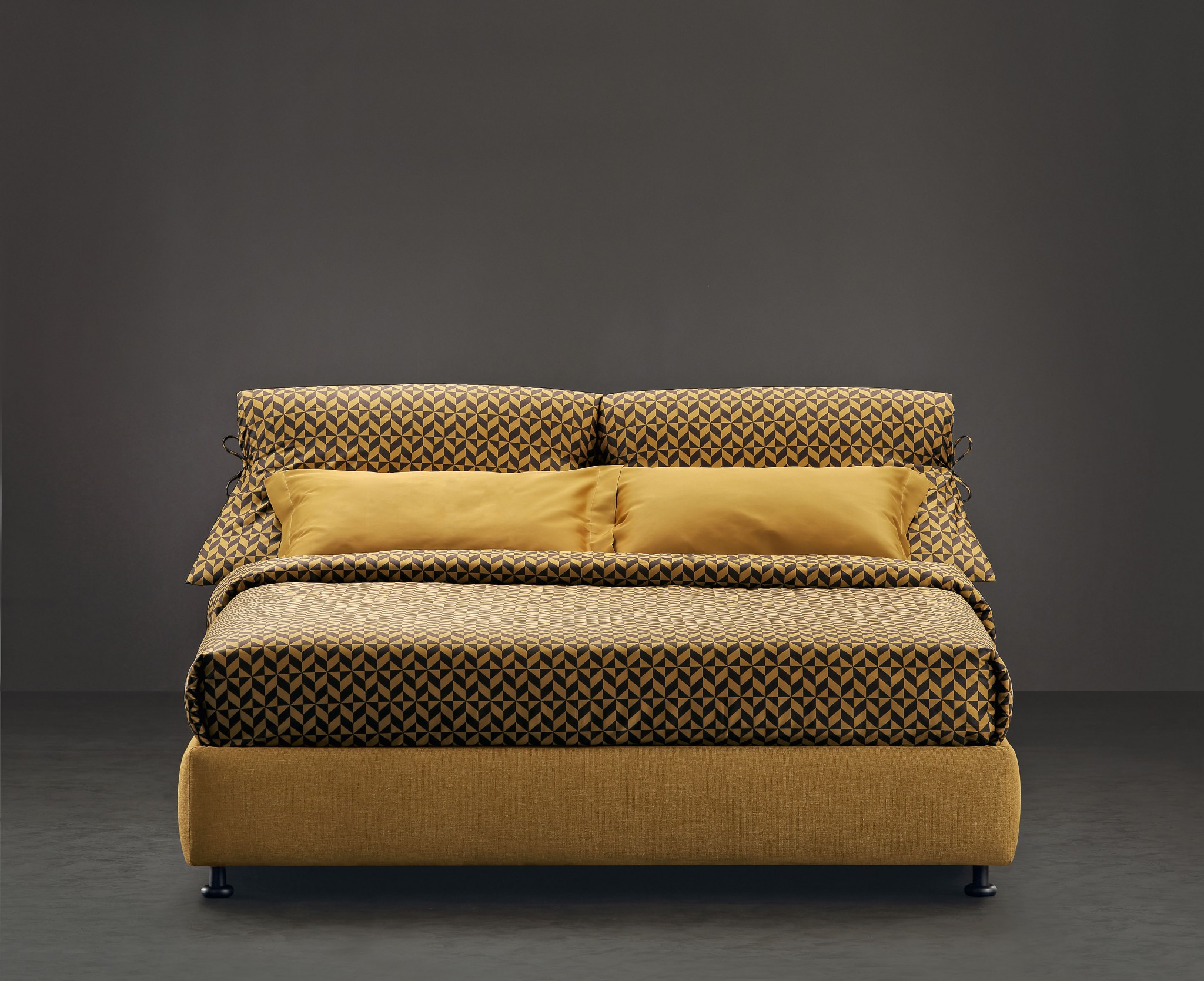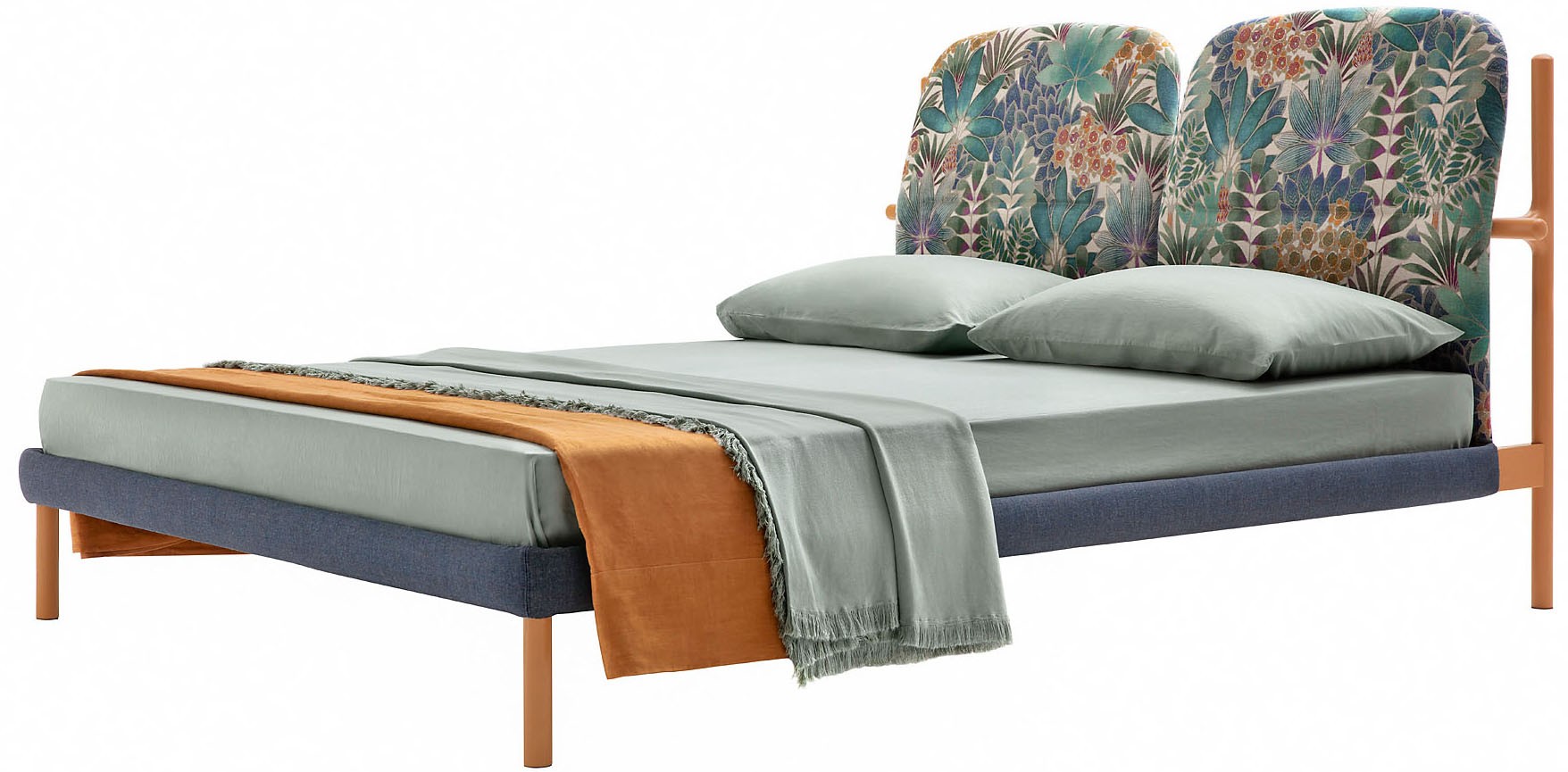 ✓ Необычную кровать Florin фабрика Zanotta представила в 2018 году. Её дизайн придумал Роберто Лаццерони. Идея соединить лёгкий деревянный каркас с изголовьем в виде подушек в текстильной отделке рождает ностальгический образ, но в то же время выглядит свежо. Во многом из-за набивного цветочного принта на ткани.