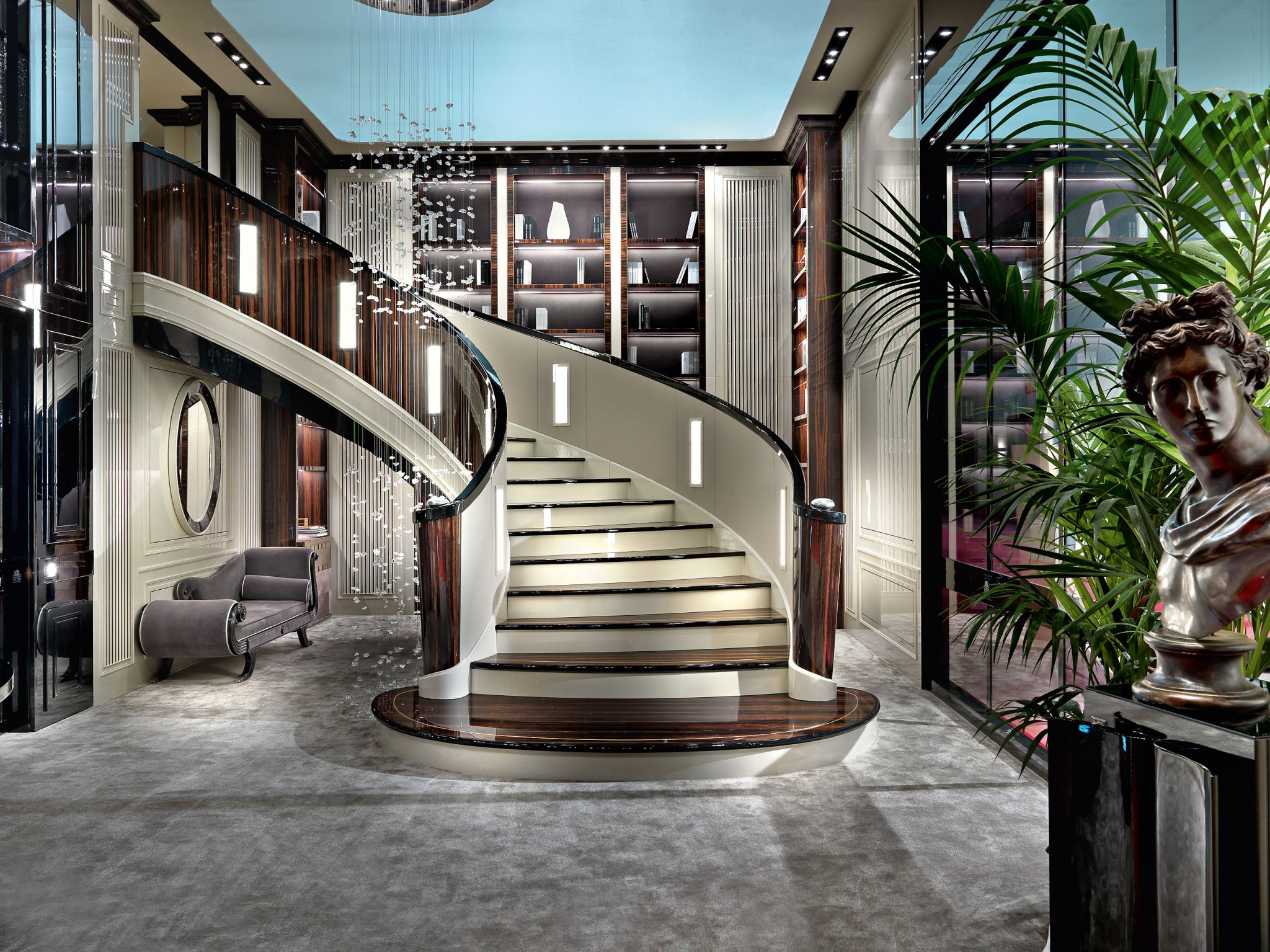Рассказывает Екатерина Кузнецова: «У нас с Francesco Molon большой опыт совместной работы, и фабрика не раз реализовывала мебель по моим эскизам. В этот раз у нас не было времени на разработку полной мебельной коллекции, поэтому кое‑что мы заимствовали из ранее осуществлённых моих проектов — какие‑то отдельные предметы мебели, идеи (панелирование, например), отделки. Всё это уже было мной разработано и ранее реализовано на других объектах, но мы эти вещи переработали, показали в ином свете. С некоторыми предметами интерьера, как, например, в случае с одним из кресел вообще вышла смешная история. Я просто нашла на складе фабрики старое кресло, перекрасила его и добавила инкрустацию. И его никто не узнал! При этом важно было сохранить узнаваемость бренда, потому что у него есть свой почерк, своё направление, и мне хотелось это направление развить.