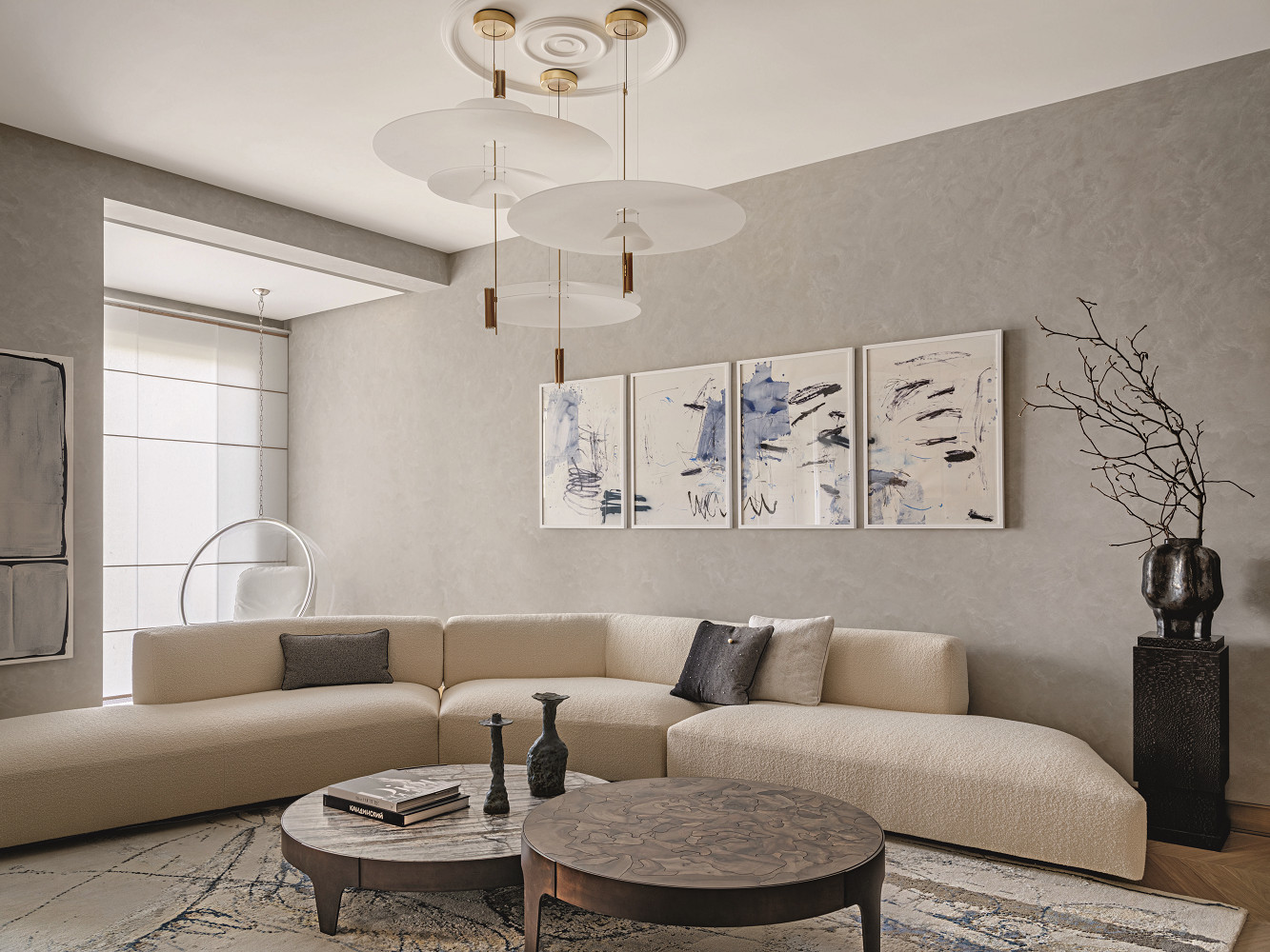 Стилистику интерьера Кэти Рыжова и Елена Токмачева, основатели архитектурного бюро «Альба Дизайн Проект», определяют как «современный минимализм с элементами азиатского стиля». Парящие круглые светильники, легкие полупрозрачные дверцы шкафов, отдаленно напоминающие бамбуковые перегородки, характерная форма обеденных стульев — азиатская тема дана полунамеками, и это придает интерьеру особый шарм. Но как авторы проекта вышли на эту тему? «Несколько лет назад я путешествовала по Китаю, — объясняет Кэти, — и много времени провела в Шанхае, в Наньши. Это старый город, построенный еще в XVI веке. С этого района когда‑то и начался Шанхай. Во время работы над проектом мой телефон неожиданно для меня, кажется, совершенно случайно, создал ролик «Воспоминания» из фотографий, которые я наснимала в Наньши. Но случайностей не бывает. Я поняла, что азиатское настроение удивительно органично ложится в проект. Да, изначально я видела этот интерьер более минималистичным, но архитектура старого Китая вдохновила меня и словно сама внесла изменения в облик пространства».