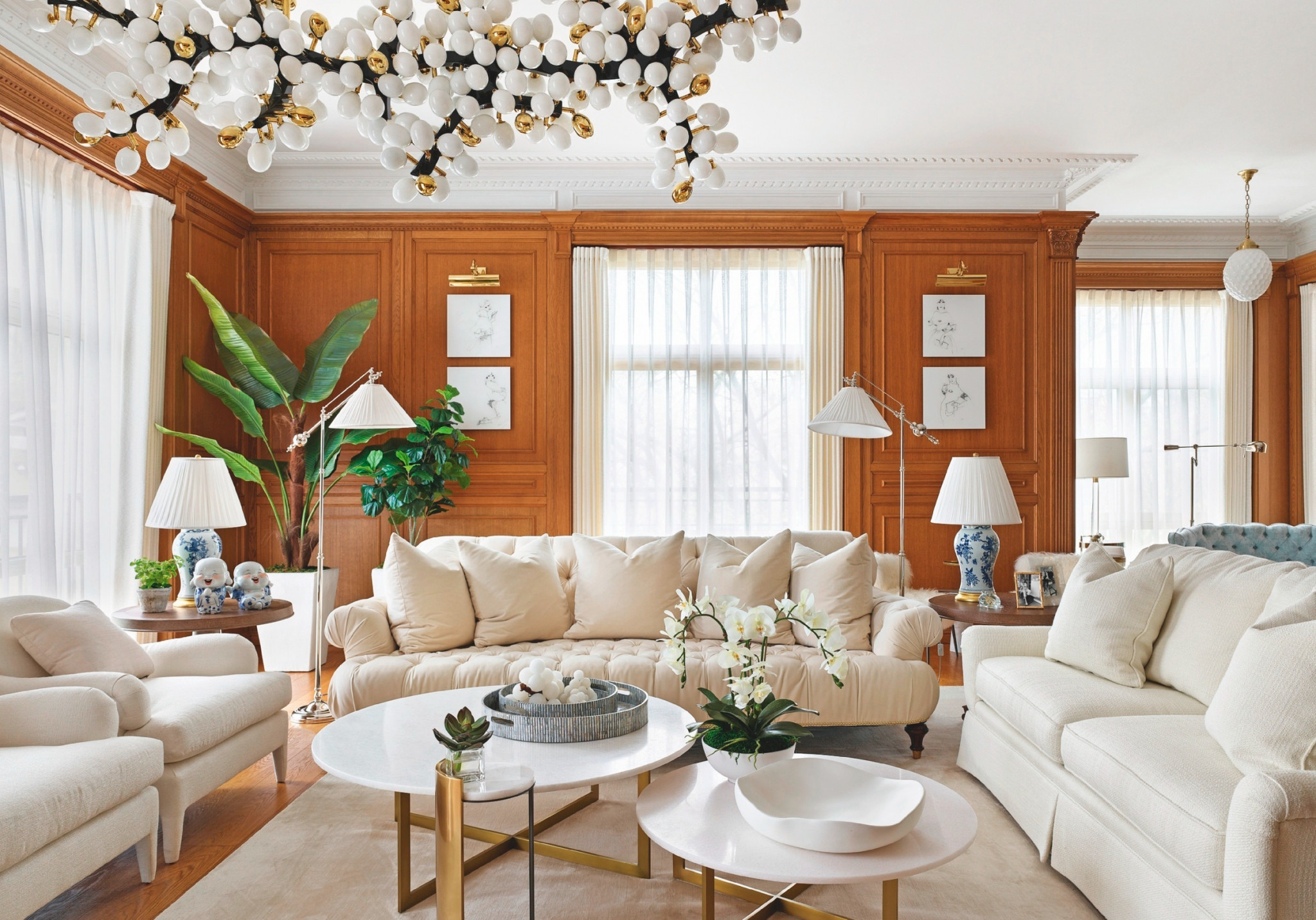 Этот проект Татьяна Миронова создавала для своих клиентов, которые знают и любят её стиль. «Обычно я проектирую интерьеры с нуля, но на этот раз это была большая декораторская работа, — рассказывает архитектор. — Меня привели в квартиру с обстановкой, где до этого жили любители традиционной классики. Мне же предстояло превратить её в апартаменты для молодой женщины с изысканным вкусом. Заказчица большую часть времени живёт за городом, а эта квартира в центре Москвы должна была стать для неё драгоценной отдушиной, любимым местом для встречи с друзьями. Простенок между окнами в гостиной украсила яркая необычная картина. Это выбор хозяйки дома, которой было важно найти такую живописную работу, без конкретного сюжета, но с настроением Автор проекта архитектор Татьяна Миронова и отдыха после столичных дел». В «наследство» будущему интерьеру достались дубовые буазери пристойного качества, тонко исполненный лепной декор, роскошные полы из массива дуба и натурального камня, солидные двери. Всё это решено было оставить. Со стеновых панелей смыли позолоту и серебрение и затонировали их в тёплый медово–рыжий цвет, потолки и лепные карнизы освежили новой краской, стены оформили тканевыми обоями. Получилась идеальная классическая база, на фоне которой можно было разыграть почти любой интерьерный сценарий. Архитектор Татьяна Миронова начала свою декораторскую партию с белого цвета, запустив его в пространство комнат по максимуму. Мебель, ковры, драпировки на окнах, плафоны светильников, аксессуары и графика на стенах моментально добавили ощущения новизны и свежести. Важной составляющей интерьера стал свет: редко где можно увидеть такое феерическое разнообразие люстр, бра, торшеров и настольных ламп. Светильники в виде гроздьев диковинных ягод, шаров, кругов, горного хрусталя и объёмных кристаллов — каждый впечатляет и завораживает. Они же решают самую главную задачу — освещают пространство некогда тёмной квартиры, создают разное настроение в дневное и вечернее время. Ну и проект не состоялся бы без тщательного подбора предметов интерьера и декора, среди которых есть и узнаваемые дизайнерские вещи, и уникальные объекты из кристаллов и кораллов, натуральных камней и благородной кожи, зеркал и металла. Благодаря им интерьер выглядит элегантным, роскошным и при этом современным. Именно контраст классических приёмов в декоре и зачастую провокационных по дизайну или масштабу форм делает интерьер смелым, модным и слегка богемным. Подлинность и изящество каждой вещи и предмета искусства рождают неповторимую атмосферу, которую принято называть характером или харизмой.