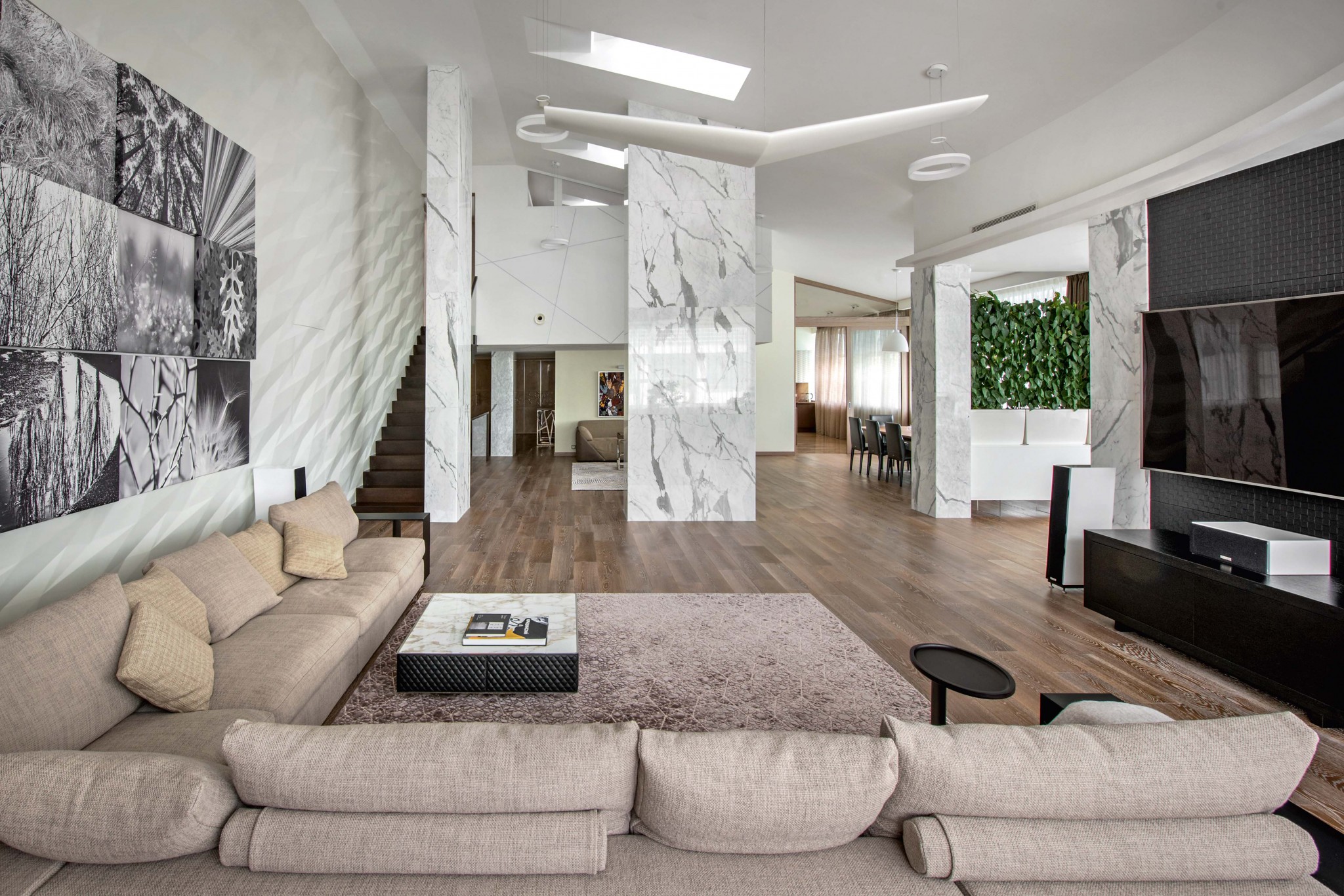 Дизайнер Максим Самойлов–Бабин проектирует исключительно в современном стиле. Интерьер этого трёхуровневого пентхауса в Москве не стал исключением