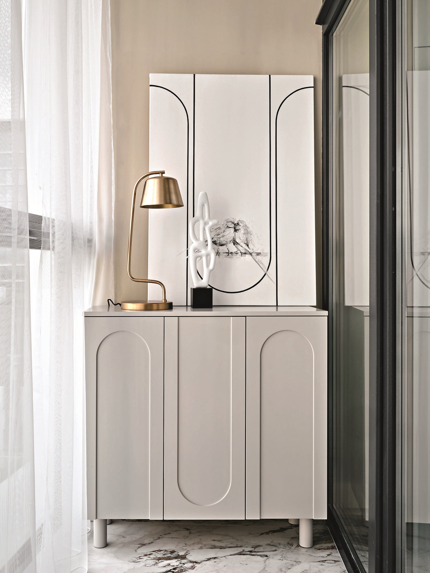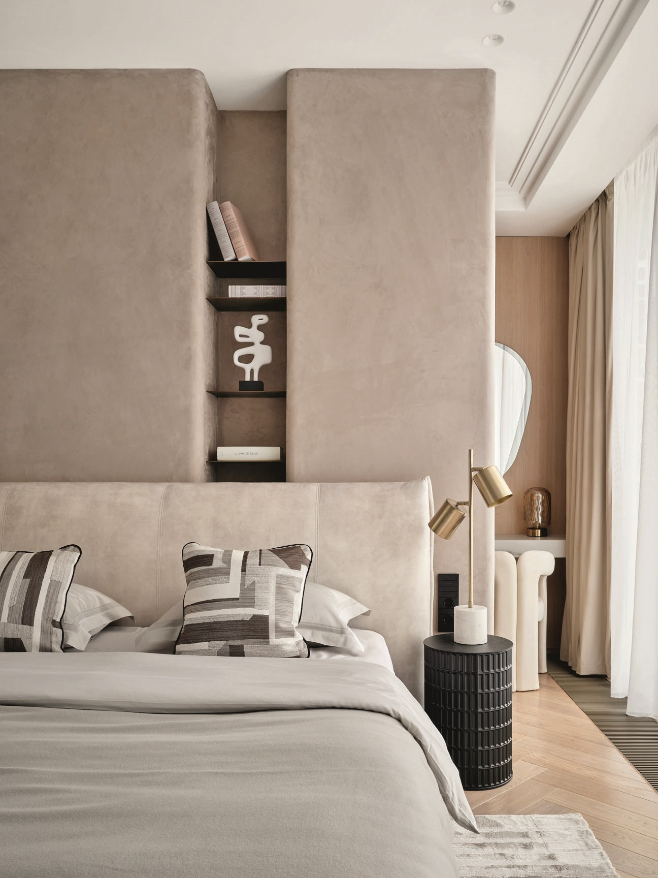 Сердце квартиры — гостиная, объединенная с кухней-столовой. Здесь могут комфортно разместиться все члены семьи и провести вечер за просмотром кино, играми или общением. Уюта этой зоне добавляет паровой камин Dimplex, размещенный в нише под ТВ-панелью. В каждой комнате есть свои интересные дизайн-решения и декор, который хочется разглядывать. «Один из членов семьи увлекается орнитологией. Мы решили отразить это в оформлении. Так в нашем проекте появились две картины с изображением птиц. Обе картины выполнены на заказ, рамы под них мы изготавливали сами. Они обшиты замшевым покрытием от Яны Светловой, которое также используется в интерьере главной спальни в отделке стены, за которой находится гардеробная», — отмечает Анастасия Кацева.