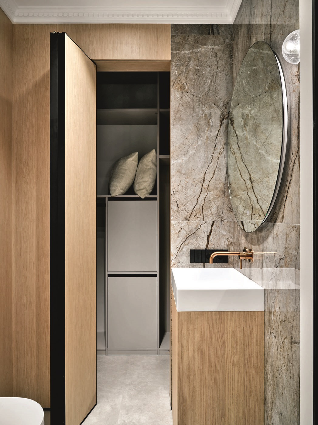 Фото: Ник Руденко. Стилист: Анастасия Корбут. Руководитель бюро Анастасия Кацева, дизайнер Ксения Игумнова, Buro Bespoke (www.burobespoke.ru). Изготовление мебели на заказ компания «Стильные кухни и интерьеры» (www.stilkuhni.ru). Изготовление зеркального портала и зеркал компания «Иванов Благих» (www.ivanovblagih.ru). Покрытия из искусственной замши Yana Svetlova Wallcoverings (www.yanasvetlova.com)