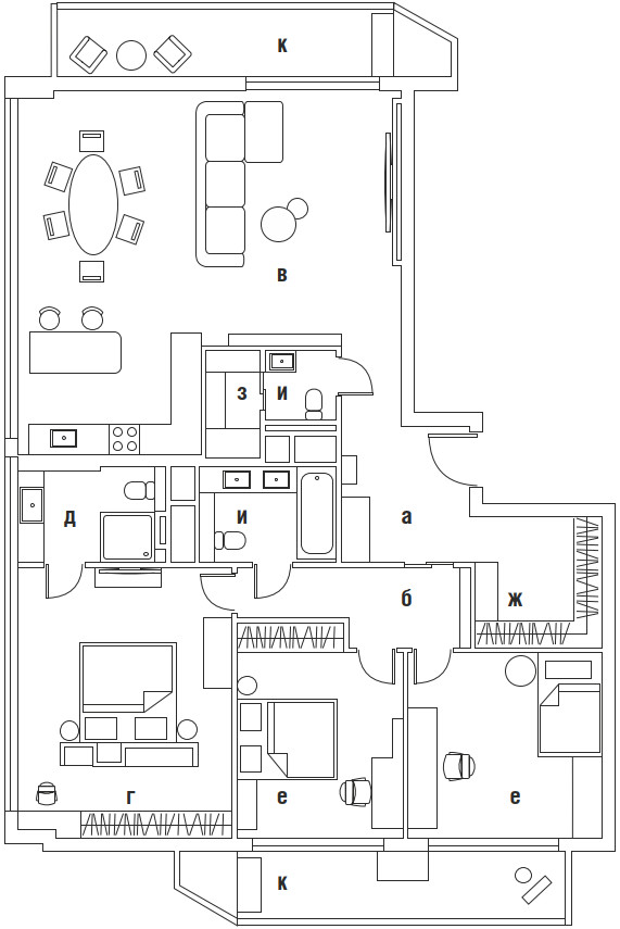Хозяева были готовы к нестандартным решениям, а это всегда благодатная почва для дизайнера. Здесь мы много экспериментировали с материалами, использовали широкую палитру фактур и текстур, которые позволили создать образ нарядного, насыщенного деталями, утонченного интерьера. Но все элементы — от рисунка плитки в ванной до текстиля и светильников — сочетаются и поддерживают основную цветовую гамму, что делает пространство целостным и одновременно уютным», — рассказывает о дизайн-концепции руководитель бюро Анастасия Кацева.