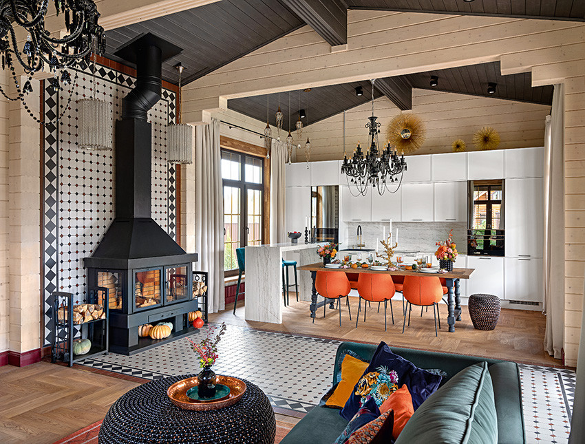 Этот уютный домик построили до, а оформили во время и после пандемии вопреки сложностям, одна из которых — перебои с поставкой материалов. Стиль автор проекта определяет как фьюжн. «Я смешивал разные стили, — рассказывает Серж Махов. — Современная кухня соседствует здесь с барочными люстрами, лёгкие стулья в духе mid– century — с массивным, классическим по стилю столом». Семья состоит из трёх человек: папа, мама и дочь–школьница. В гости будут приезжать и взрослые сыновья, которые живут отдельно. Архитектор сделал уже не один объект для этих клиентов, и к моменту работы над домиком они стали хорошими друзьями. «Хозяева принимали активное участие и в ремонте, и в дизайне, так что, можно сказать, это наше совместное творчество», — говорит Серж Махов. На тот момент