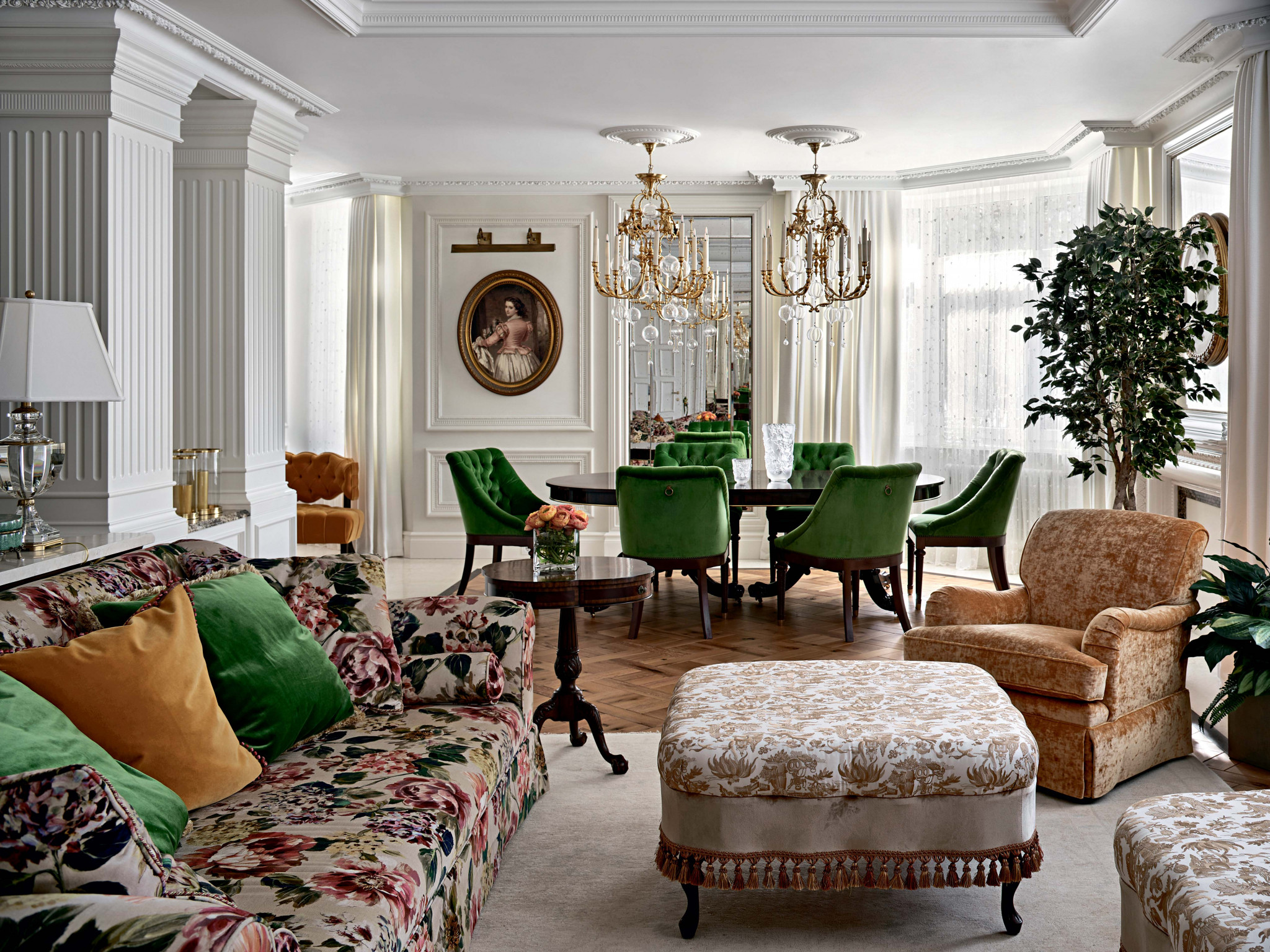 Цветовая палитра этой московской квартиры строится на жизнеутверждающем сочетании белого и цвета сочной зелени