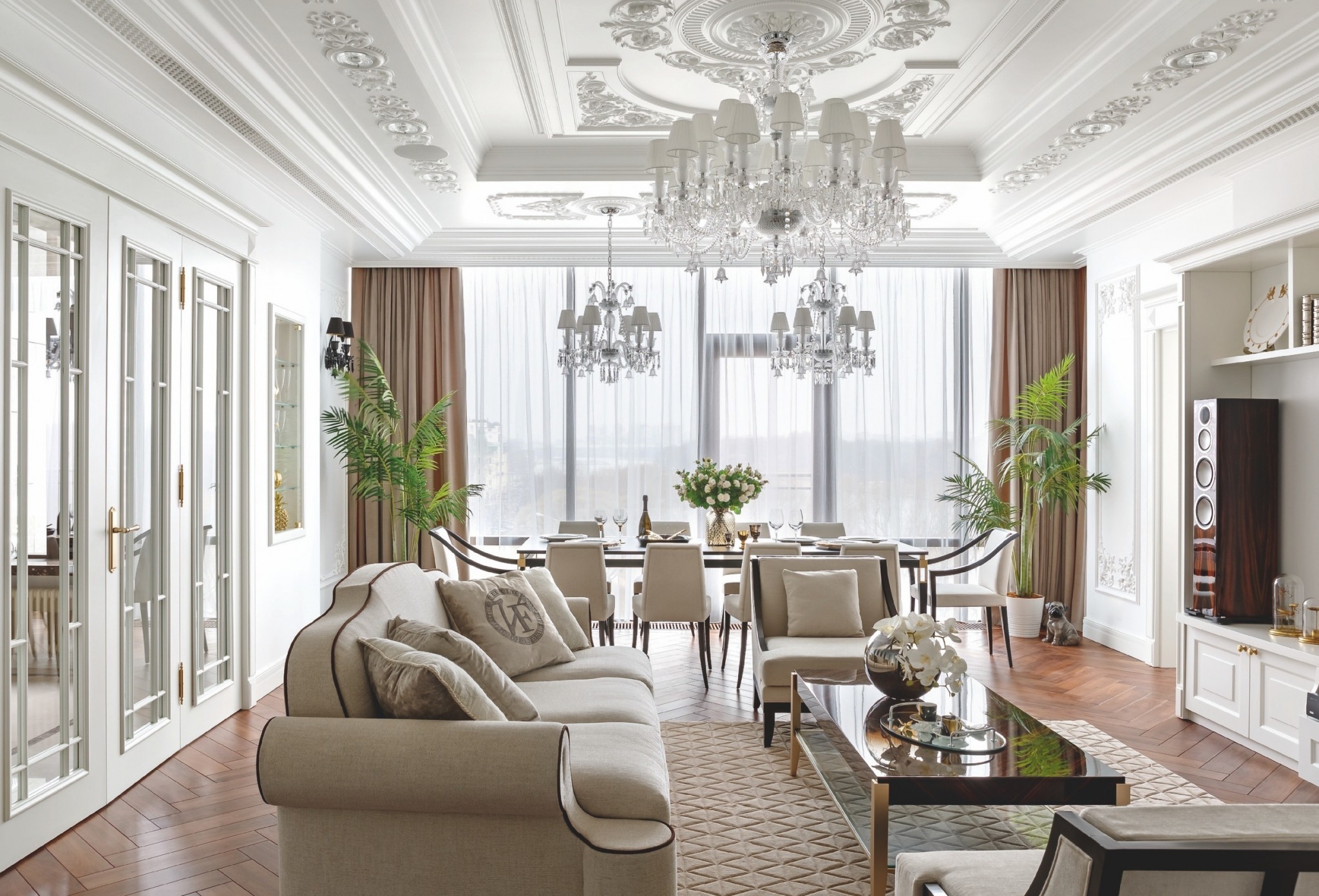 Авторы проекта дизайнеры Иван и Вероника Комогорцевы (студия Design О!, г. Санкт–Петербург), поставка столовой группы, аксессуаров салон BORGHESE, поставка аксессуаров Visionnaire салон Home Сollection