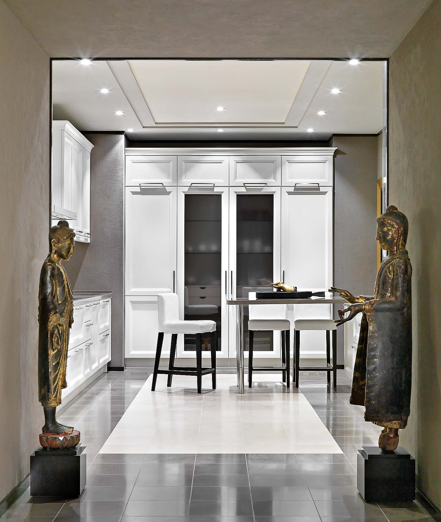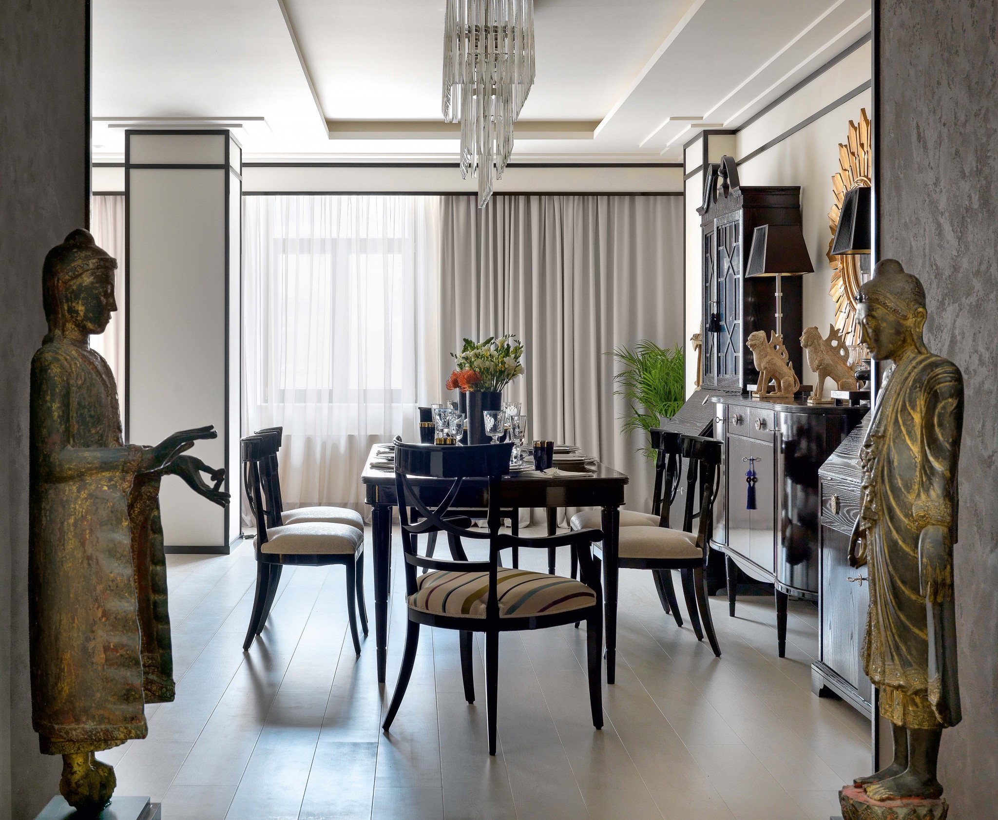 Автор проекта Евгений Болотный: «Заказчик поставил задачу интегрировать древние артефакты из его коллекции в интерьер московской квартиры. Таким образом, коллекция стала отправной точкой в решении пространства»