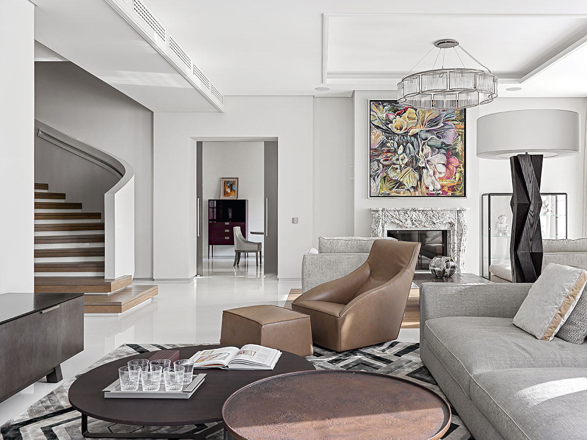 Хозяева — супружеская пара с двумя детьми — обратились в бюро Hôtel Richesse с пожеланием модернизировать здание без внутренней отделки, построенное более десяти лет назад. Новый дом заказчики хотели видеть современным, наполненным светом и воздухом, где было бы комфортно всей семье. Дом не соответствовал запросу времени, и первое, что сделали архитекторы во главе с Максимом Басковым, — полностью переработали планировочное решение и объём. «Нашей главной задачей было «раскрыть» дом и увеличить его полезную площадь, — рассказывает Максим. — Однако сложность заключалась в том, что практически все стены и конструкции были несущими. Поэтому мы полностью изменили перекрытия холлов первого и второго этажей, лестничные марши, добавили полноценный мансардный этаж, а также пристроили одноэтажное крыло, в котором разместили малую гостиную, SPA–зону с бассейном и тренажёрным залом. Для каждого члена семьи предусмотрели своё личное пространство со спальней, ванной и гардеробной — для этих целей выделили второй этаж». Внешне здание в духе псевдовикторианской эпохи также не отвечало эстетическим требованиям сегодняшнего дня. Применив в отделке экстерьера камень, архитекторы облагородили фасад, но при этом сохранили общий визуальный облик постройки. «Мы намеренно решили разделить стилистическую концепцию интерьера и экстерьера дома, сыграв на контрасте современности и классики, учитывая, что объект находится в посёлке со сложившейся застройкой, — добавляет автор проекта. — И если на фасадах можно увидеть некоторые излишества в виде балясин и колонн, то в интерьере мы старательно избегали таких элементов, стремились лаконичностью формы, игрой света и тени, цветовыми решениями создать гармоничное пространство на основе правильного планировочного каркаса». Огромное внимание в проекте уделено предметам обстановки — мебели, обивочным тканям, драпировкам, светильникам и декору. «Для нас было важно создать стилистически цельное пространство, придав при этом интерьерам отдельных комнат неповторимые черты, — поясняет Максим. — Ведущие европейские компании, чьи вещи составили основу предметной среды дома, шли нам навстречу в изменении стандартных решений и, по сути, отдельные предметы — уникальные, не имеющие аналогов». Предпочтение отдано деликатным, матовым поверхностям, исключением стала торжественная мебель столовой группы с лаковым покрытием столешницы из серого шпона, компаньоном