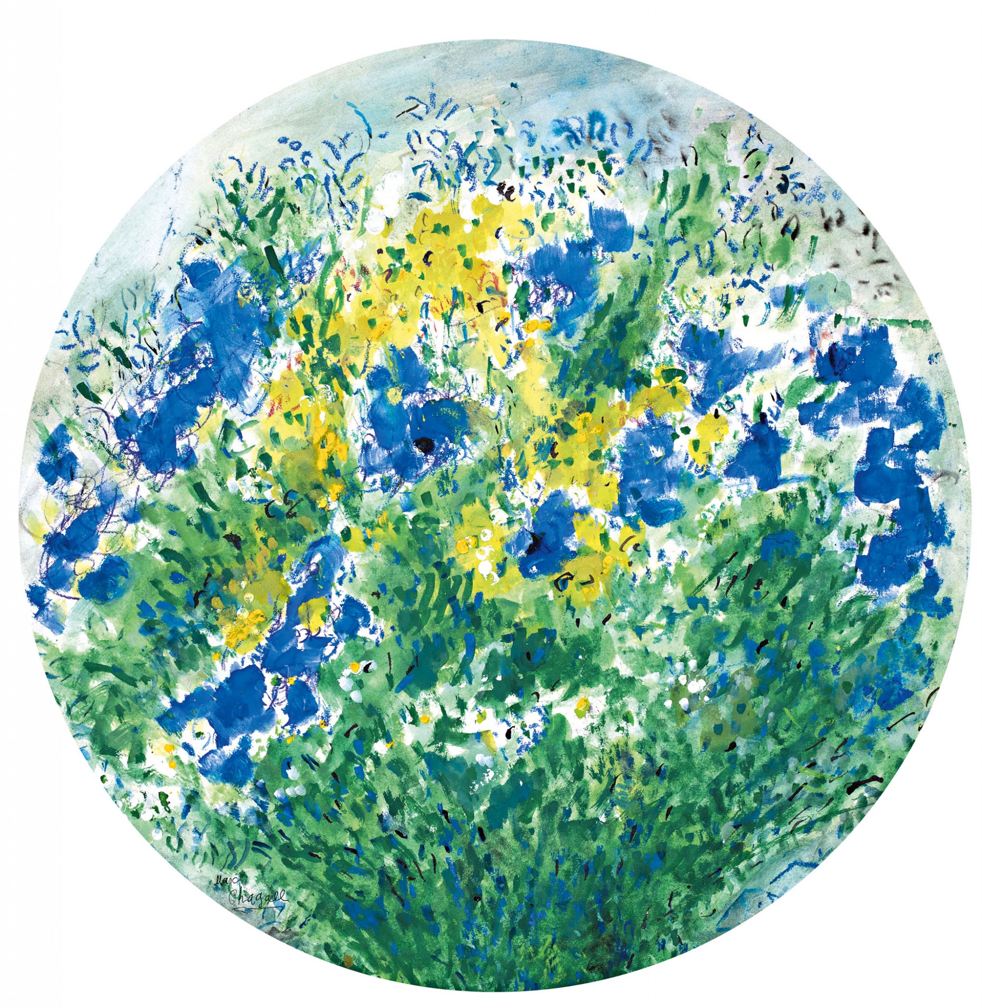 Шагал признавался, что страстно любил цветы. Хотя редко писал собственно натюрморты. Художнику нравилось работать в фантазийном жанре, которому часто сопутствовала цветочная тема, но полноценных «Букетов» в его творчестве не так много. В основном они относятся к позднему периоду и связаны с экспериментами в новой для Шагала технике монотипии, которой он увлёкся в 1960-х. Монотипия — разновидность гравюры: краска наносится на лист заготовки быстрыми, точными движениями, затем, пока материал не высох (считанные минуты), художник должен успеть сделать единственный отпечаток. В портфолио Шагала — несколько сотен работ, выполненных в этой технике.