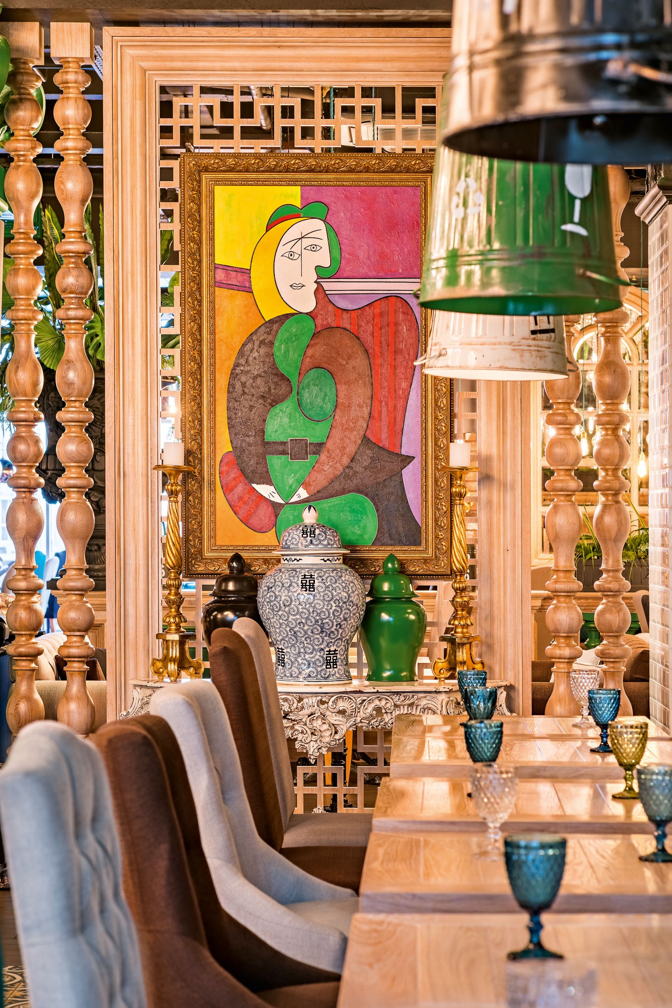 В интерьере ресторана восточной кухни Bahroma тема Востока подана весьма неожиданно
