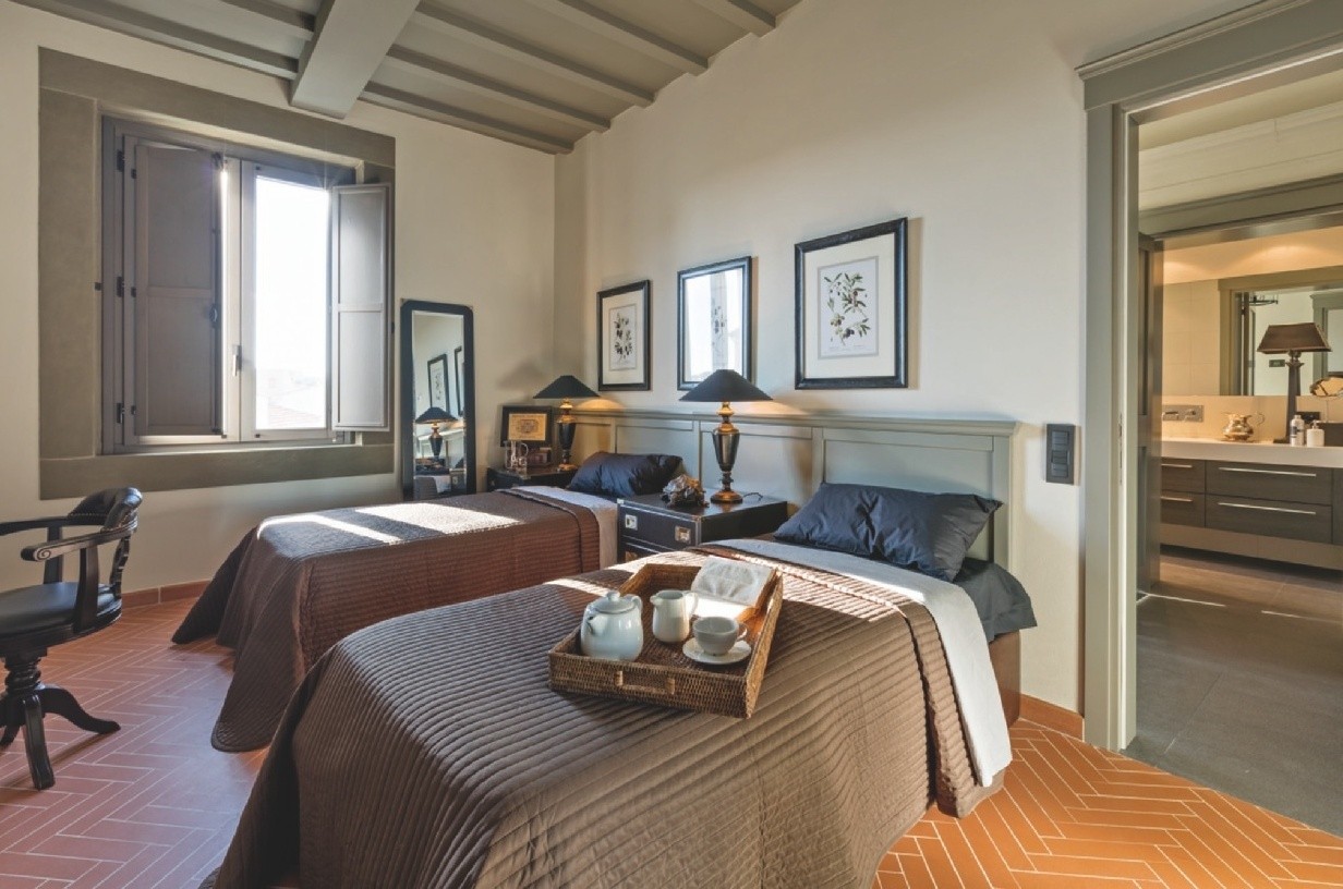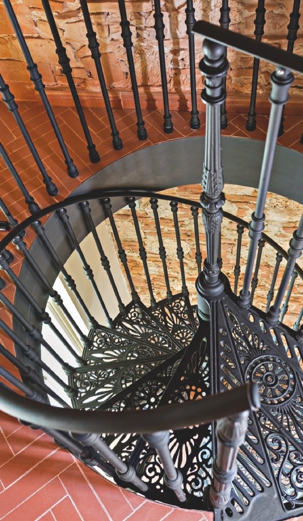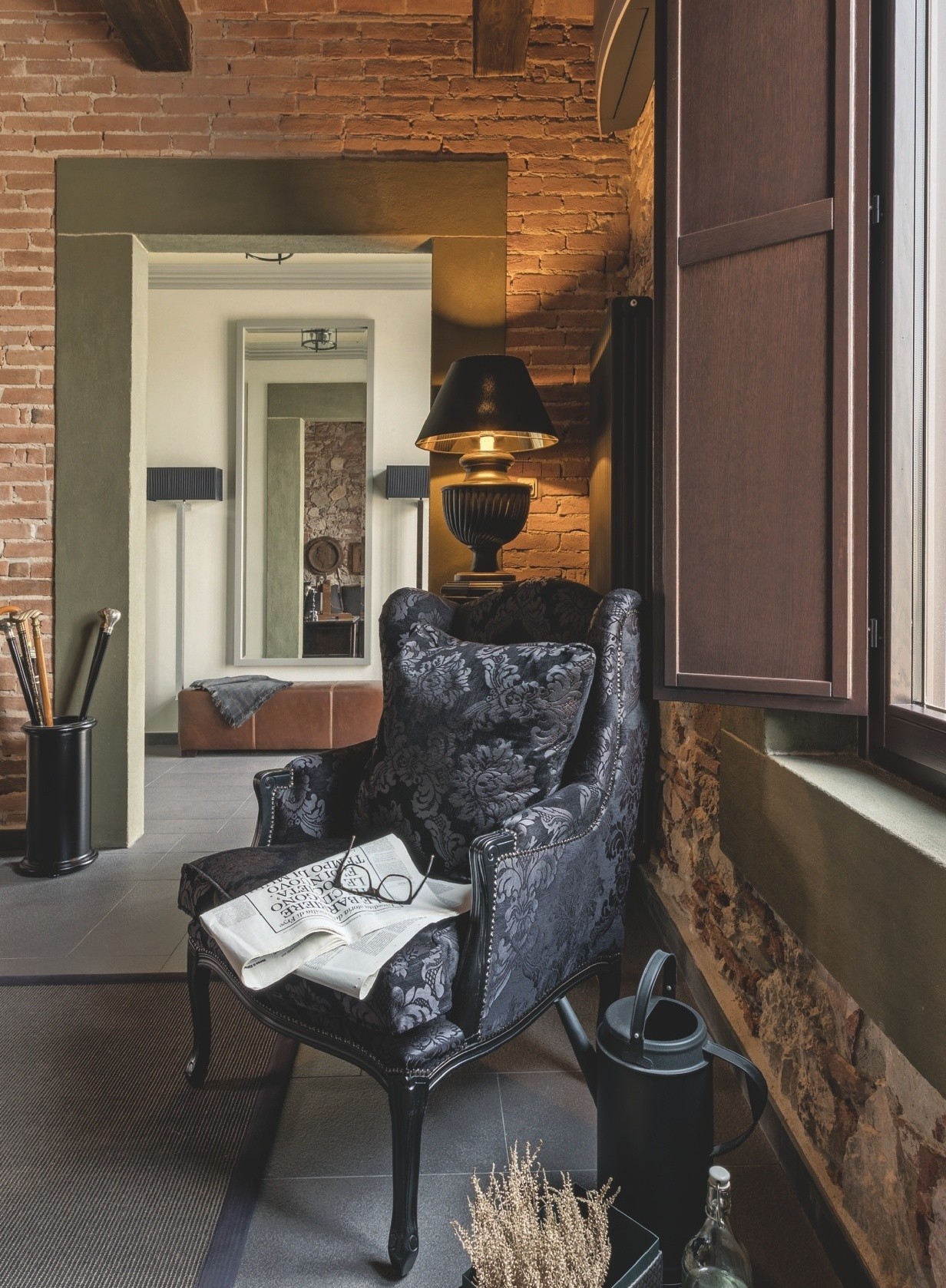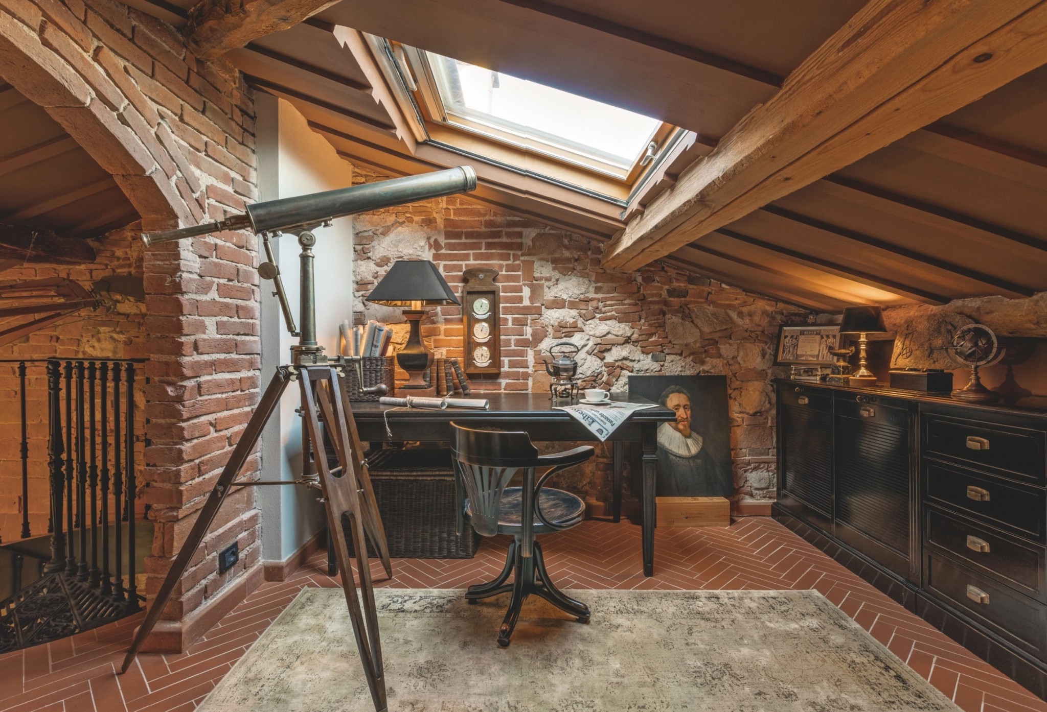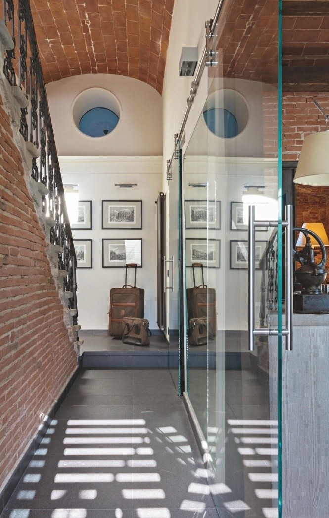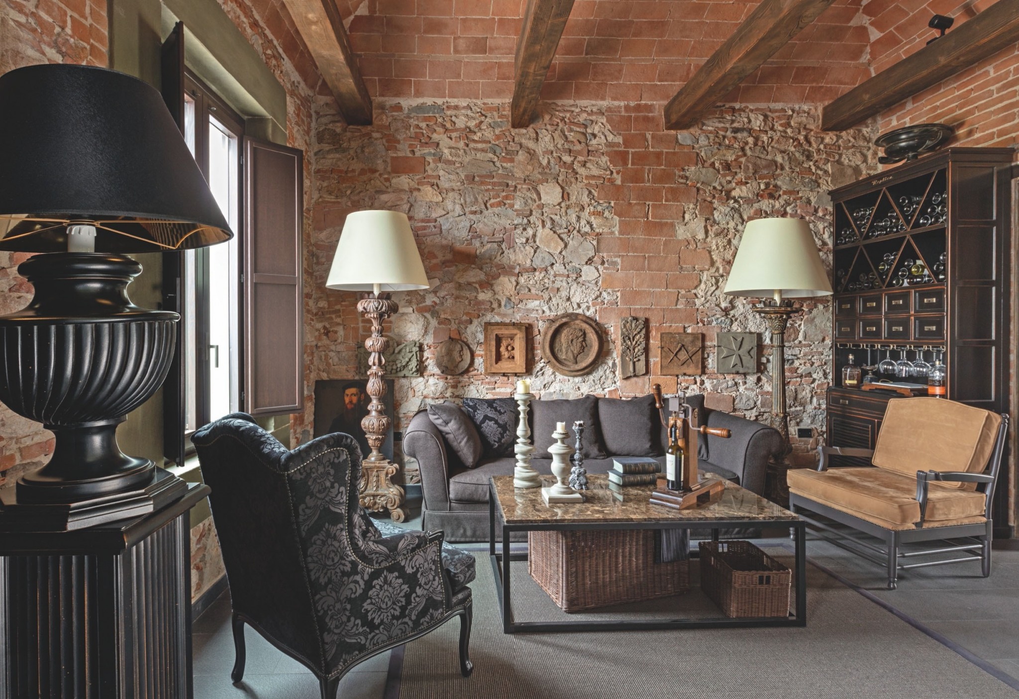 Путешествуя по расположенным поблизости тосканским городам (Пиза, Сан-Джиминьяно, Лукка, Вольтера, Сиена, Флоренция), архитекторы изучали особенности стиля, наблюдали и отмечали типичные приёмы в работе с характерными для этого региона материалами. Они очистили и отреставрировали часть исторических конструкций здания: вскрыли колоритную кладку стен, сводчатые межэтажные перекрытия, старинные балки крыши, каменные ступени из серого песчаника, чугунные ограждения и деревянные перила межэтажной лестницы. Наталия и Кирилл старались использовать местные отделочные материалы, а в декоре отдавали предпочтение предметам, найденным на многочисленных антикварных и букинистических рынках, что-то заказывали в местных кустарных мастерских. Так, большая часть полов второго этажа выложена плиткой Cotto Toscana Tradizionale, дополнительно обработанной по старинной рецептуре. Да и современный керамогранит для облицовки первого этажа выбирался такой, чтобы он по цвету и фактуре напоминал каменные мощения галерей.
