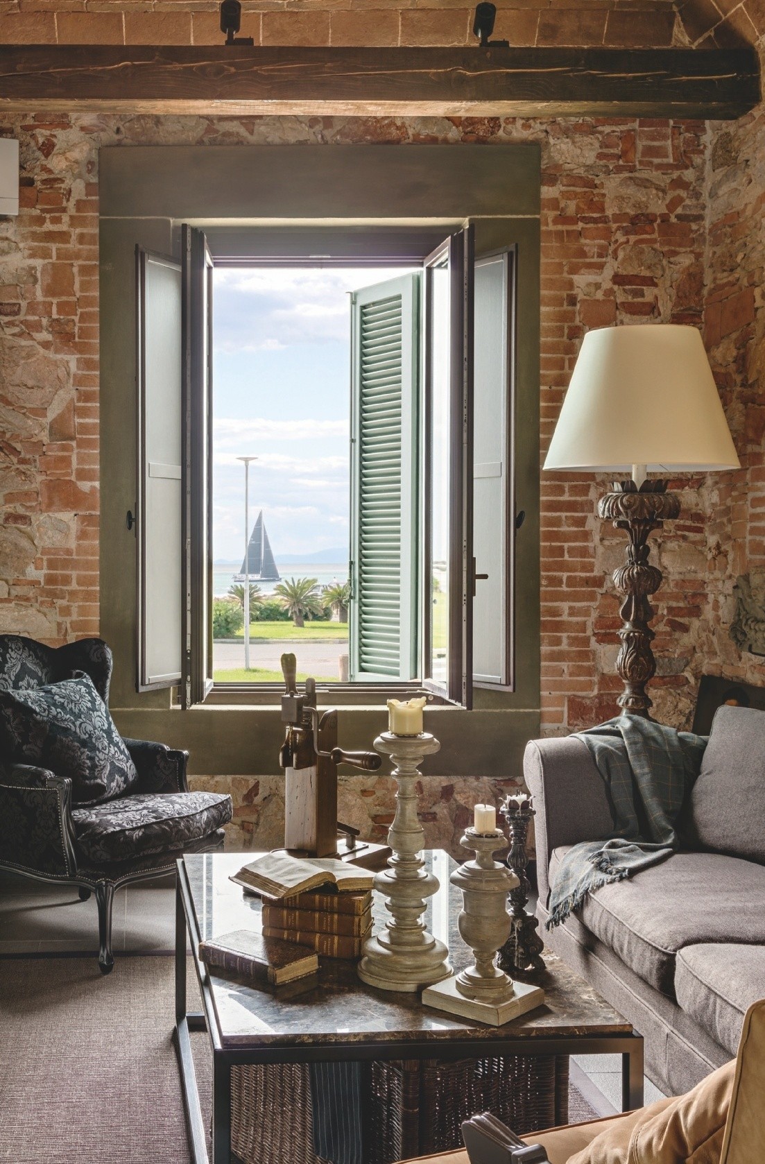 Семья заказчиков большая — три поколения, много родственников. Они любят устраивать приёмы для родных и друзей. Дом на берегу моря владельцы выбрали из-за близости к недавно построенной в устье реки Арно яхтенной марине, где проходят регаты, и из-за увлечённости итальянской культурой и кулинарией. Им хотелось, чтобы в интерьере дома чувствовались традиционная атмосфера и очарование. Обычная для этого региона застройка — это небольшие дома, виллы с типичными для Тосканы архитектурными элементами: дверными порталами и оконными проёмами, обрамлёнными блоками из серого песчаника, небрежно оштукатуренной кладкой стен, жалюзийными ставнями снаружи и глухими деревянными ставнями внутри, заменяющими собой привычные нам шторы.