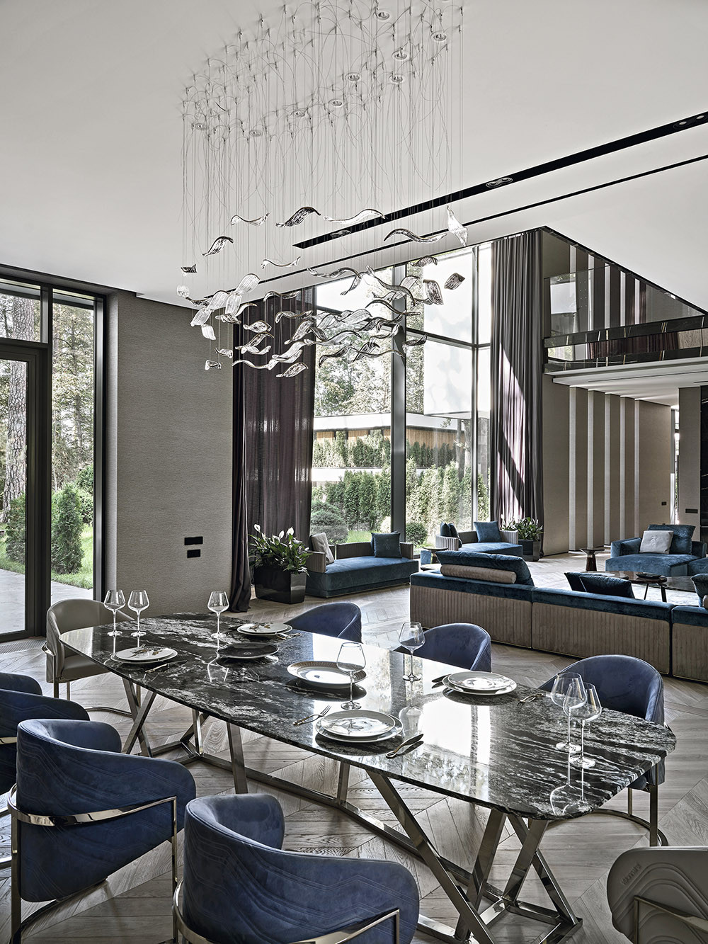 Вилла Eclipse площадью 2600 кв. м расположена в пойме Москвы-реки, среди столетних корабельных сосен. Это первый проект Visionnaire в России — для работы над домом бренд пригласил архитектора Сергея Буринского, которому тоже близка концепция уникального meta-luxury интерьера. «Начиная новый проект, я представляю себе не просто объект недвижимости, а целостное единство самого дома, окружающего ландшафта и людей, которые в нем живут. Еще до начала стройки я в течение многих месяцев часто приезжаю на место, чтобы изучить его «характер»: смотрю, как изменяется освещение в течение дня, откуда дует ветер, нахожу обзорные точки, маршруты для прогулок», — говорит архитектор. При создании виллы Сергей Буринский использовал ведущие тренды с упором на комфорт — панорамное остекление с угловыми окнами и натуральные материалы позволяют ощутить полное слияние с природой. Внутри дома использованы натуральный шпон, оникс и разные виды мрамора, а в наружной отделке — бразильский гранит и лиственница. Для защиты от атмосферных воздействий архитектор продумал специальные навесы.