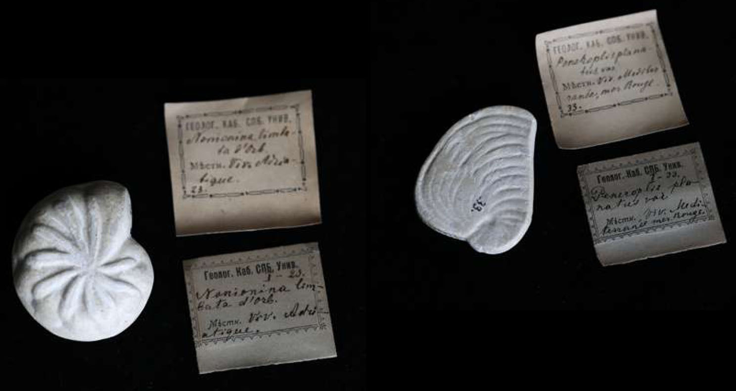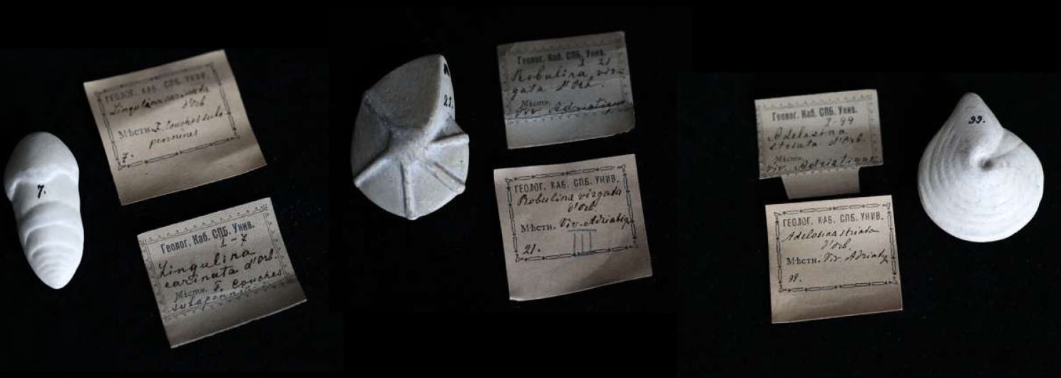 Многие годы в Палеонтологическом музее СПбГУ хранилась коллекция гипсовых моделей фораминифер, представленная 95 экземплярами размером 3,5–5 см. На образцах и сохранившихся этикетках были обозначены только номера, видовые названия, место нахождения и возраст оригиналов. Время, место приобретения и авторство самой коллекции не были известны, так как каталог и записи о ее поступлении отсутствовали. Неизвестно было первоначальное число и, соответственно, количество утраченных предметов хранения. 12 предметов хранились вообще без исторических этикеток. У ряда моделей отсутствовали номера (или на этикетках были написаны неточные названия родов и видов). Конечно, в таком виде это ценное историческое собрание не могло быть представлено в экспозиции музея и использовано для обучения студентов.