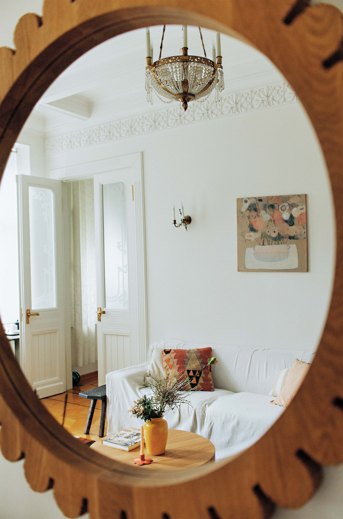 Перебираешь эти детали, как зарисовки, и понимаешь, какими тонкими линиями нынешние хозяева дома нанесли рисунок своей жизни на красивую основу. Дом, в одну из квартир которого год назад переехали декоратор Лера Сергеева и актер Василий Симонов, был построен в начале ХХ века.